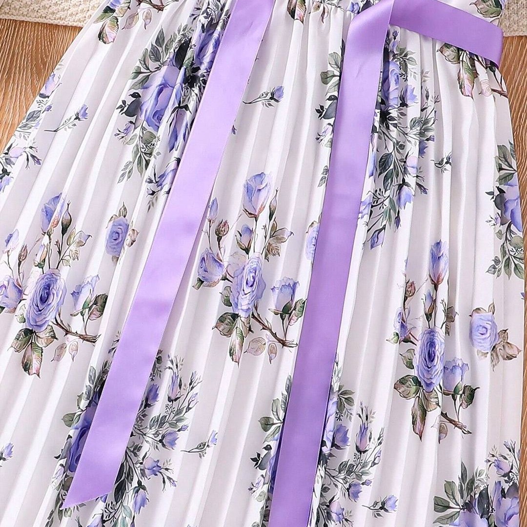 BAESD Girls Floral Printed Puff Sleeves Fit & Flare Dress