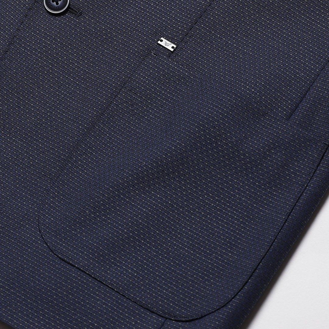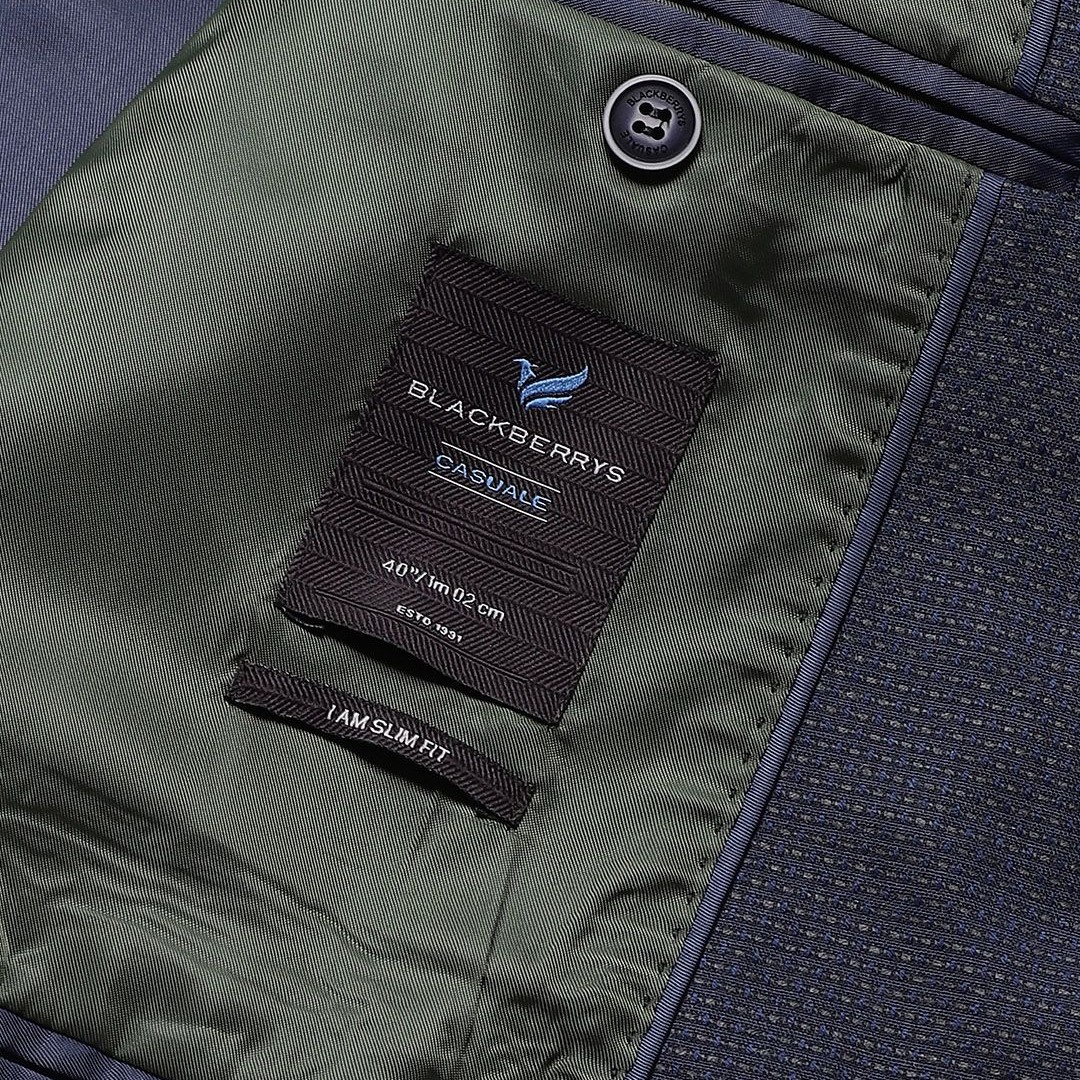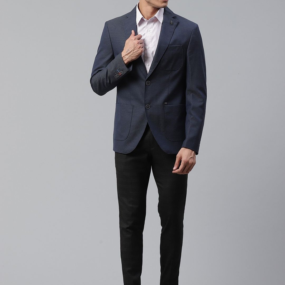 Blackberrys Men Navy Blue Textured Slim Fit Single-Breasted Formal Blazer
