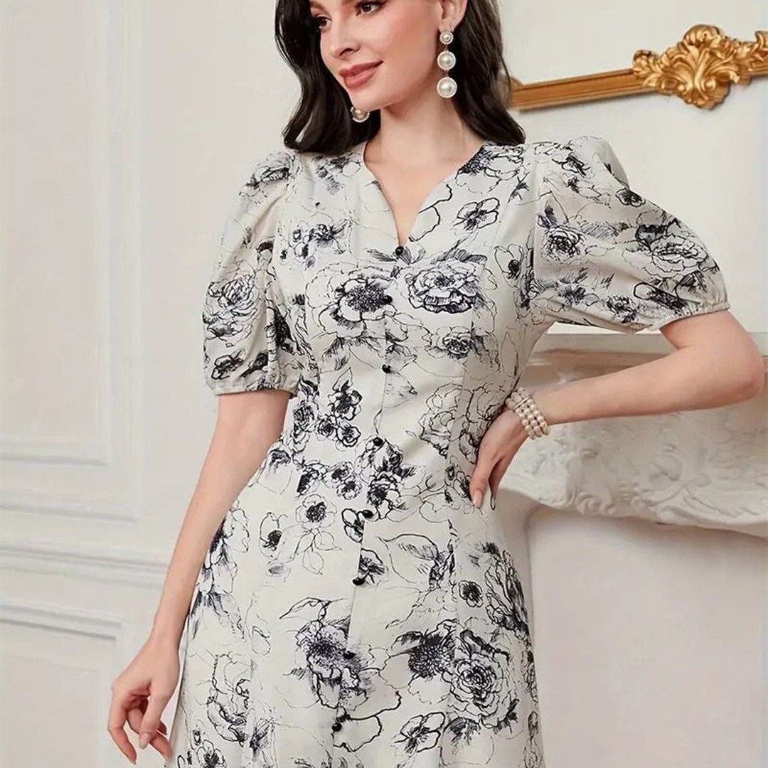 Bollyclues Women Floral Printed A-Line Midi Dress