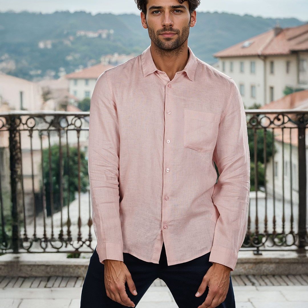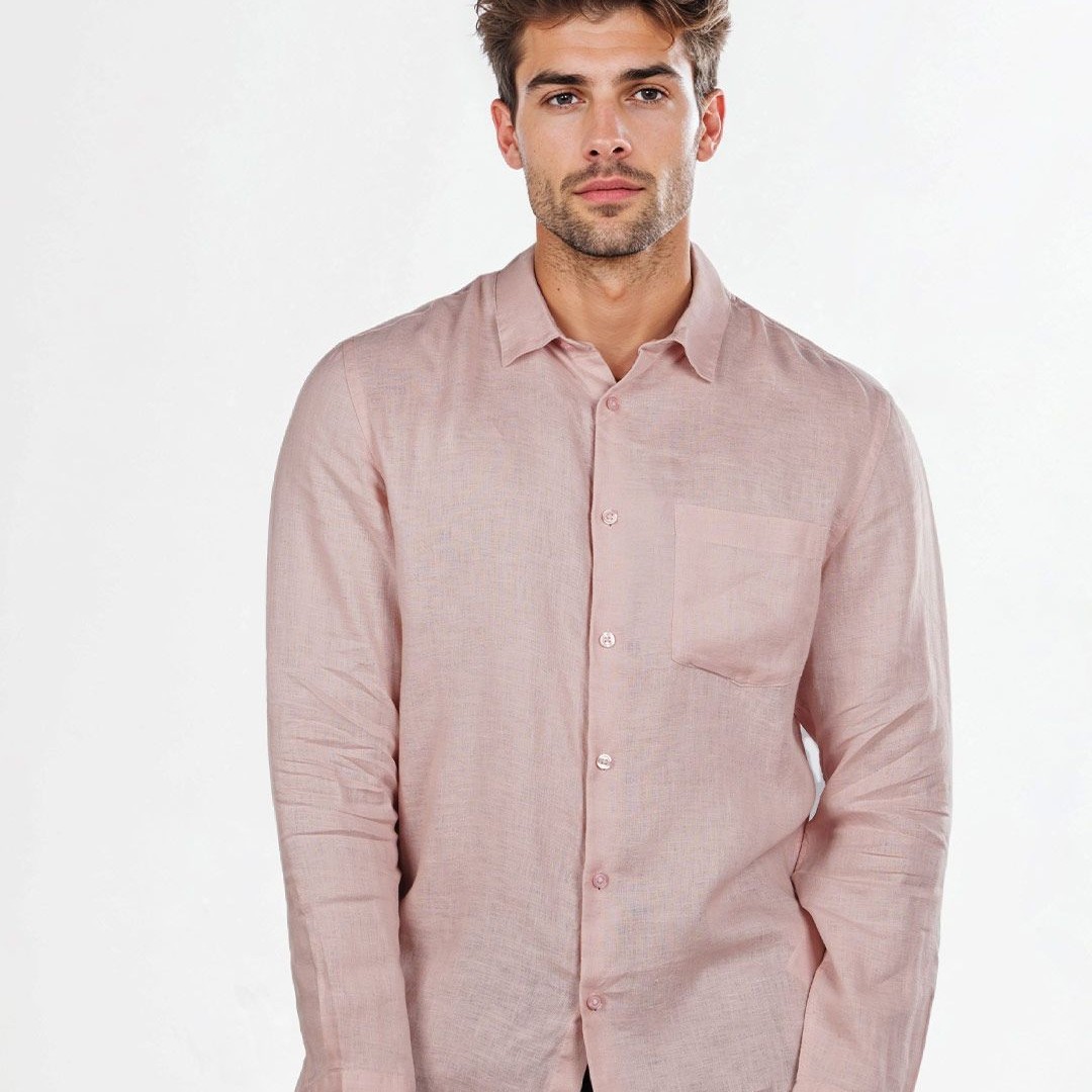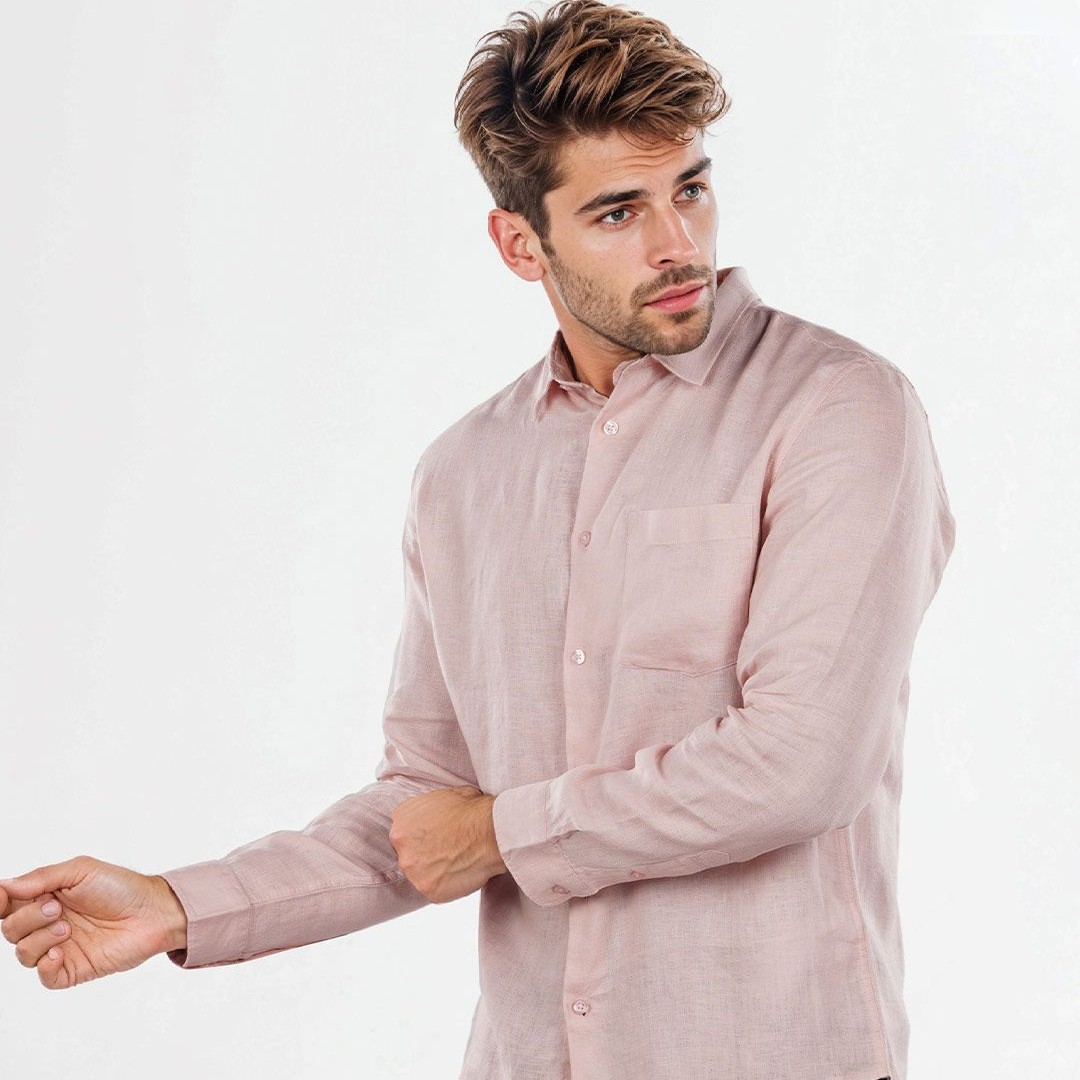 Celio Men Classic Regular Fit Spread Collar Solid Pure Linen Casual Shirt
