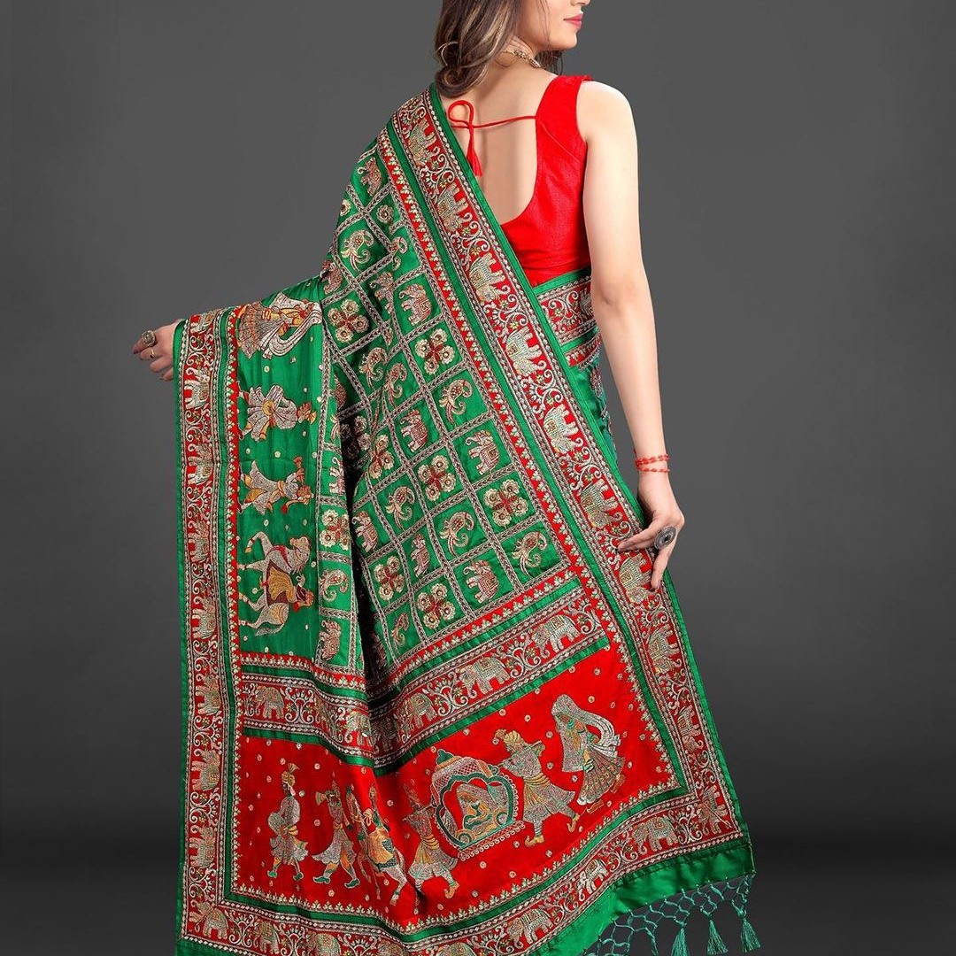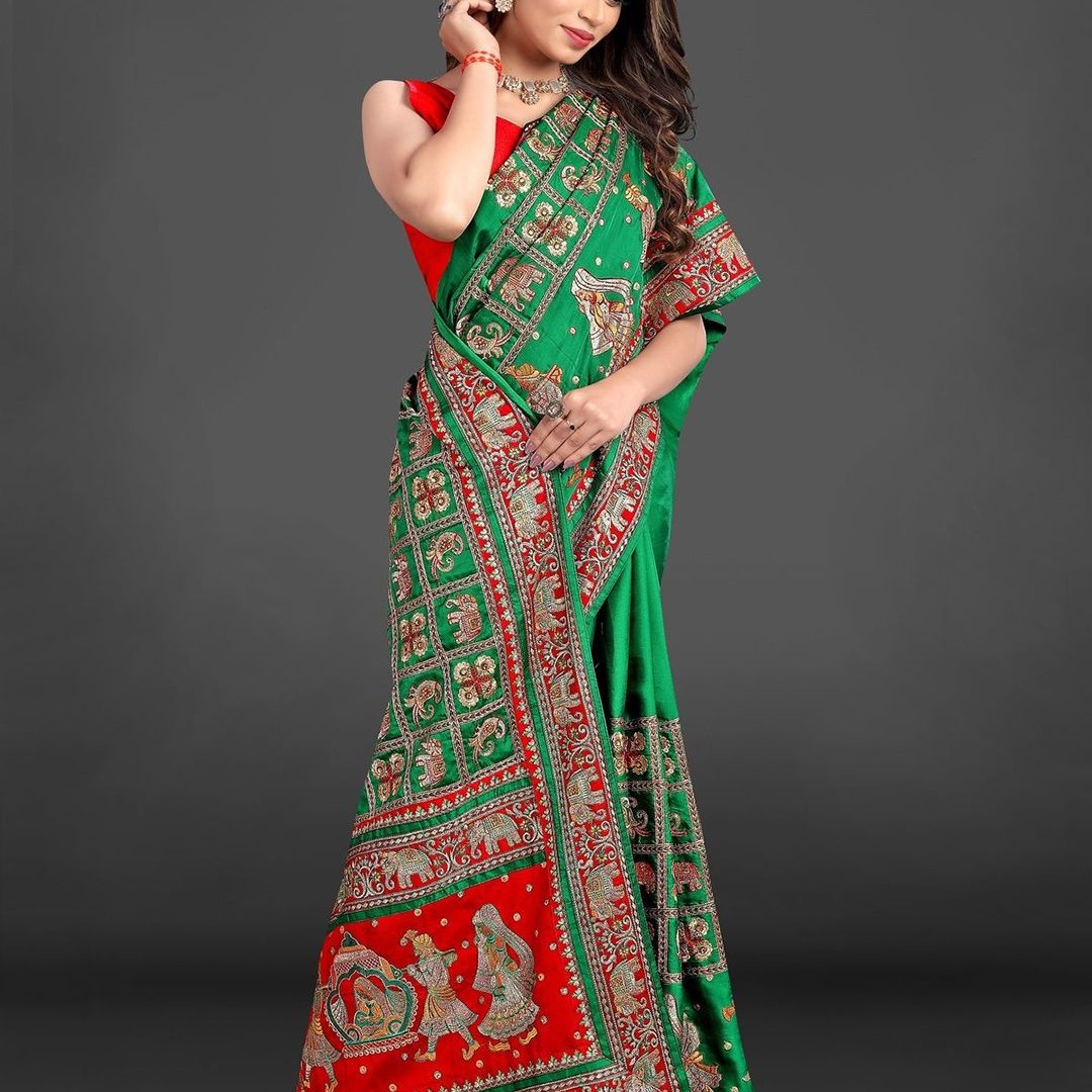 CRAFTYSTYLES Ethnic Motifs Zari Silk Blend Saree