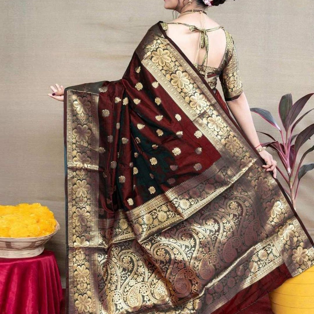 Dhyey Fashion Ethnic Motifs Woven Design Zari Pure Silk Banarasi Saree