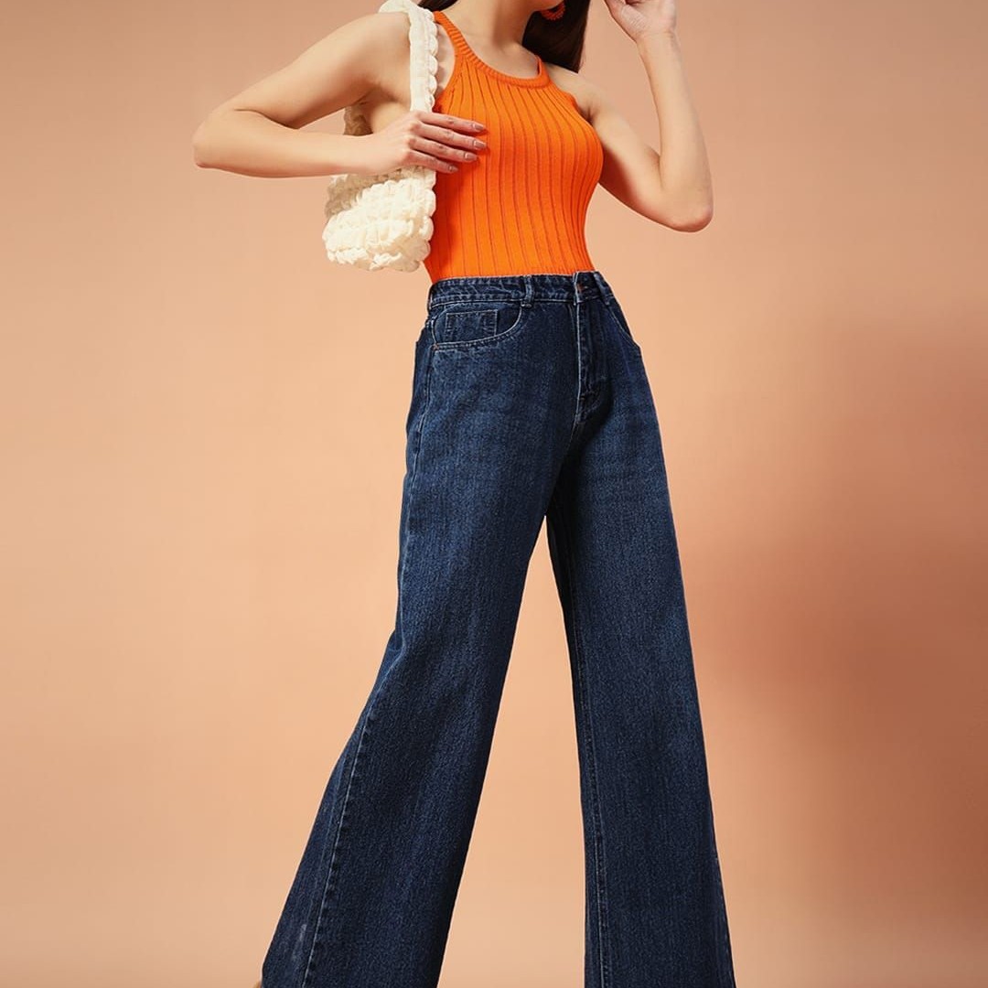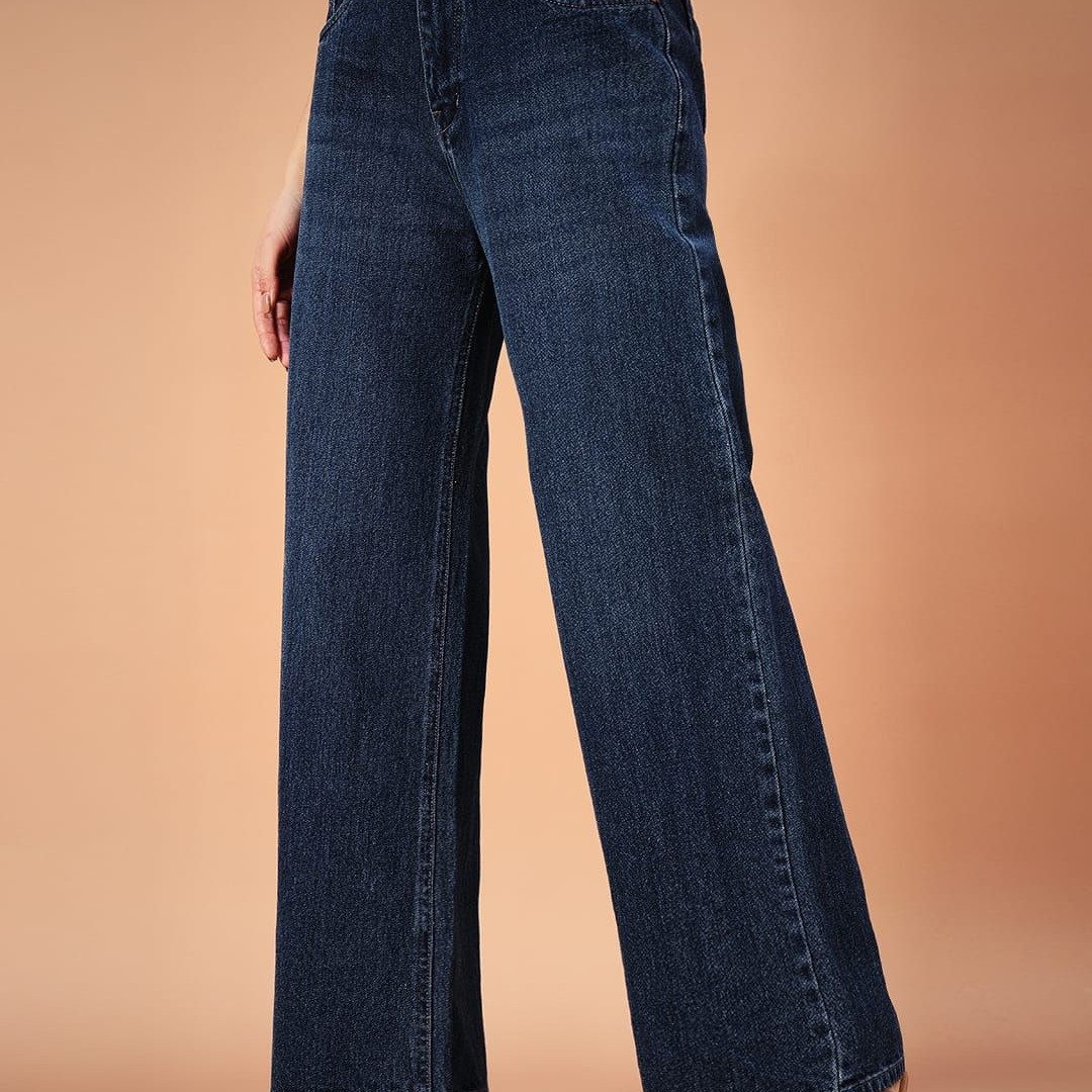 FASHIONFIBRE Women Cotton Comfort Wide Leg High-Rise Light Fade Jeans