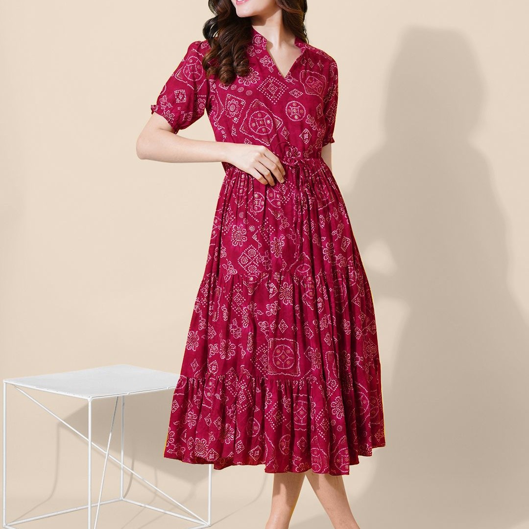 FLOWERVELLY Ethnic Motifs V-neck Fit and Flare Dress