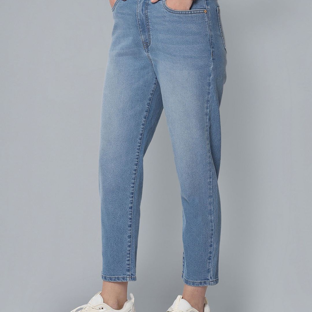 Flying Machine Women Relaxed Fit High-Rise Light Fade Stretchable Cropped Straight Fit Jeans