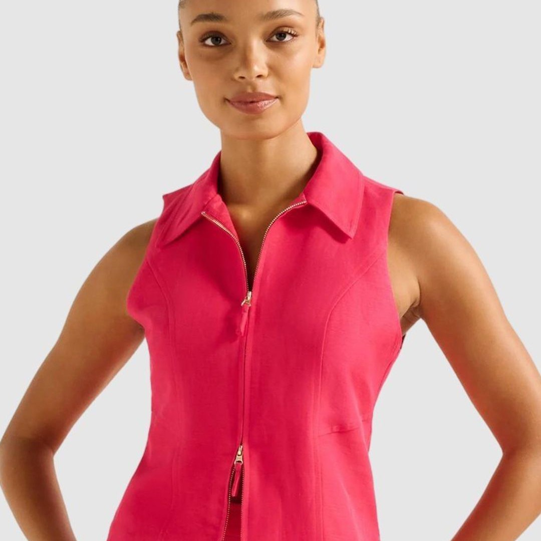 Forever New Women Solid Shirt Collar Sleeveless Top