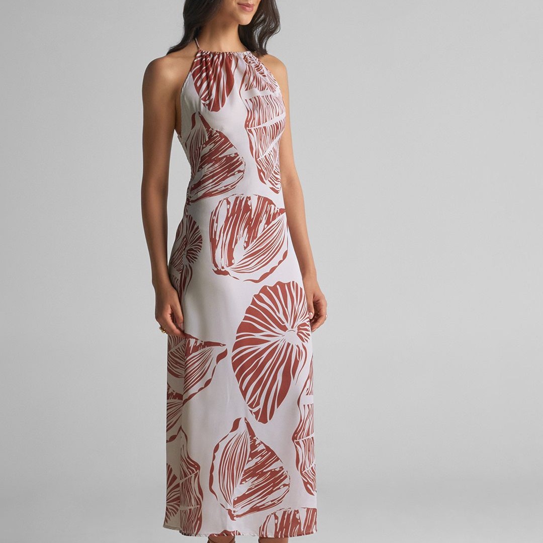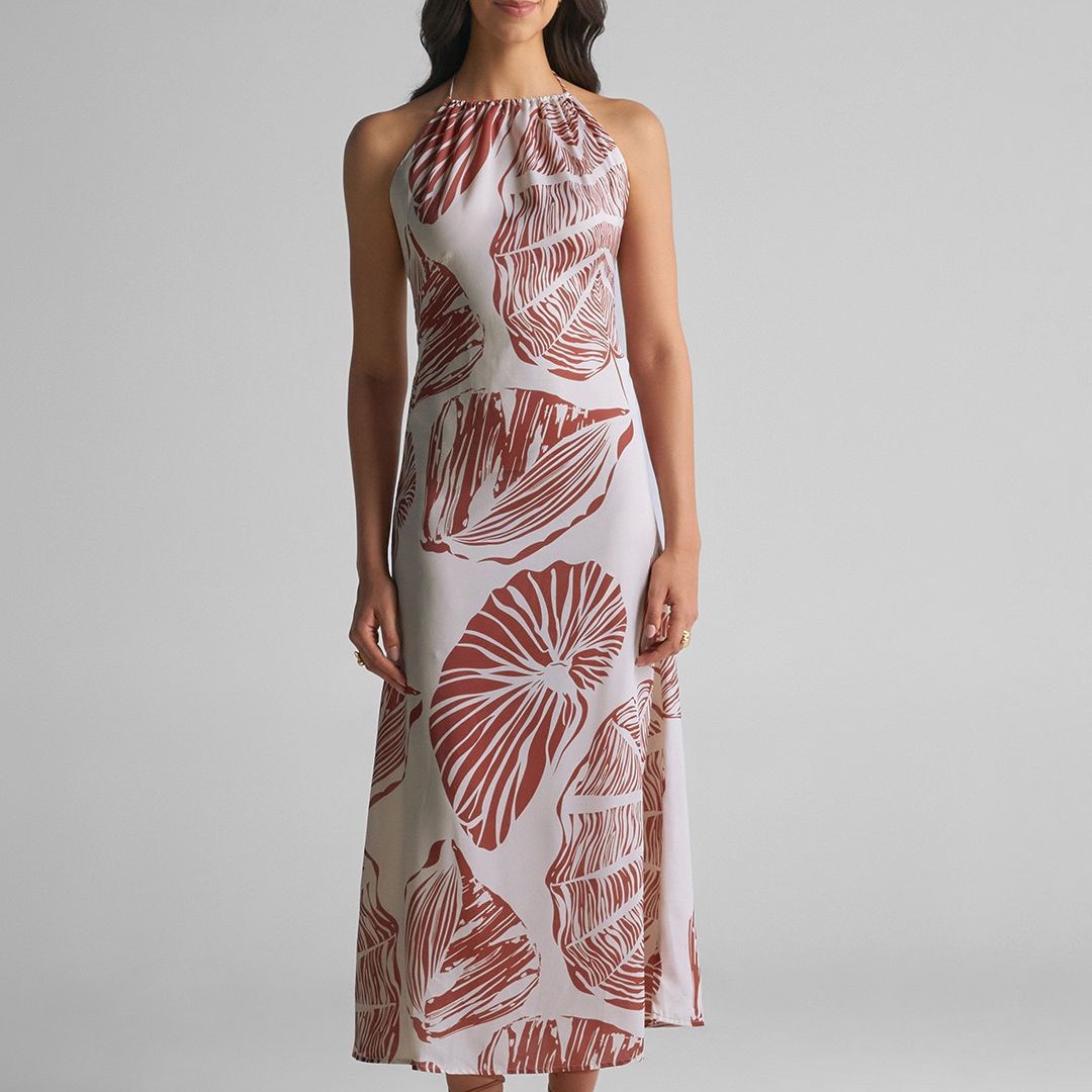 GABLOR Print Halter Neck Satin Maxi Midi Dress