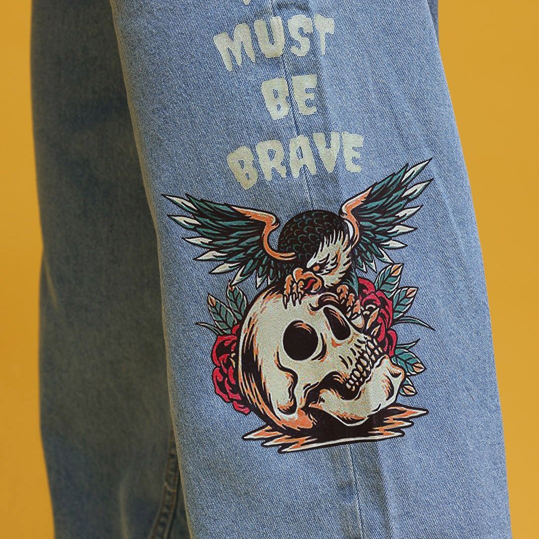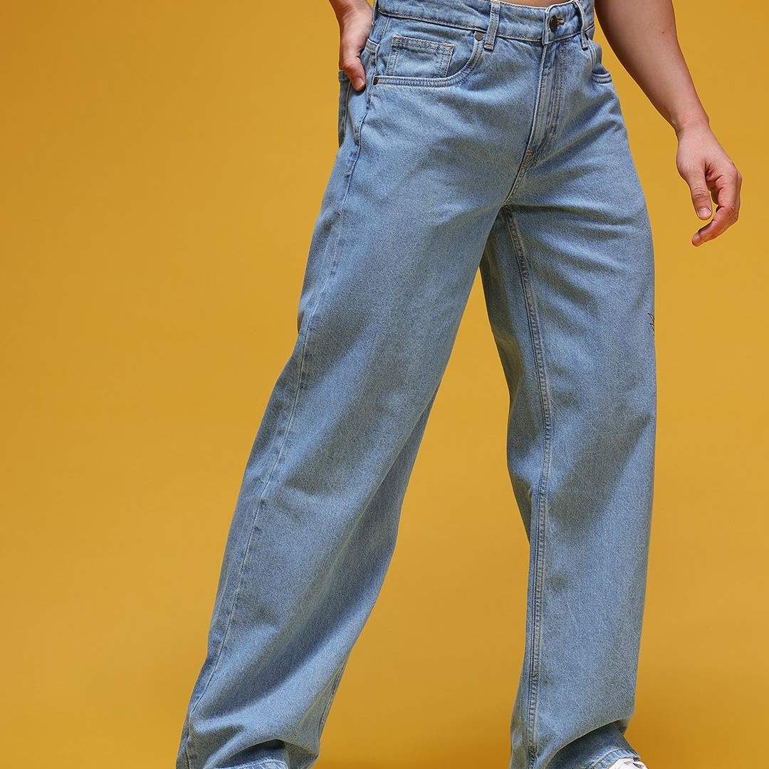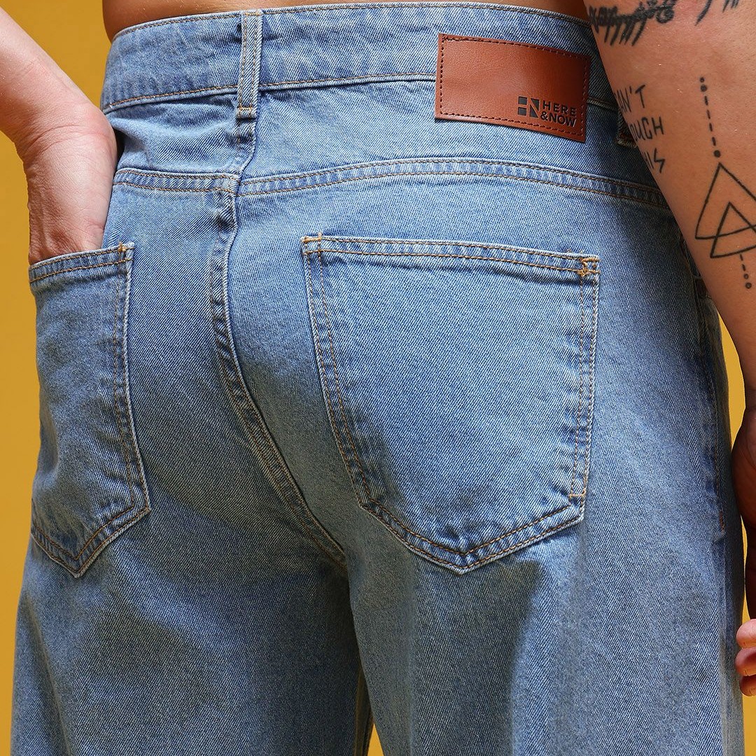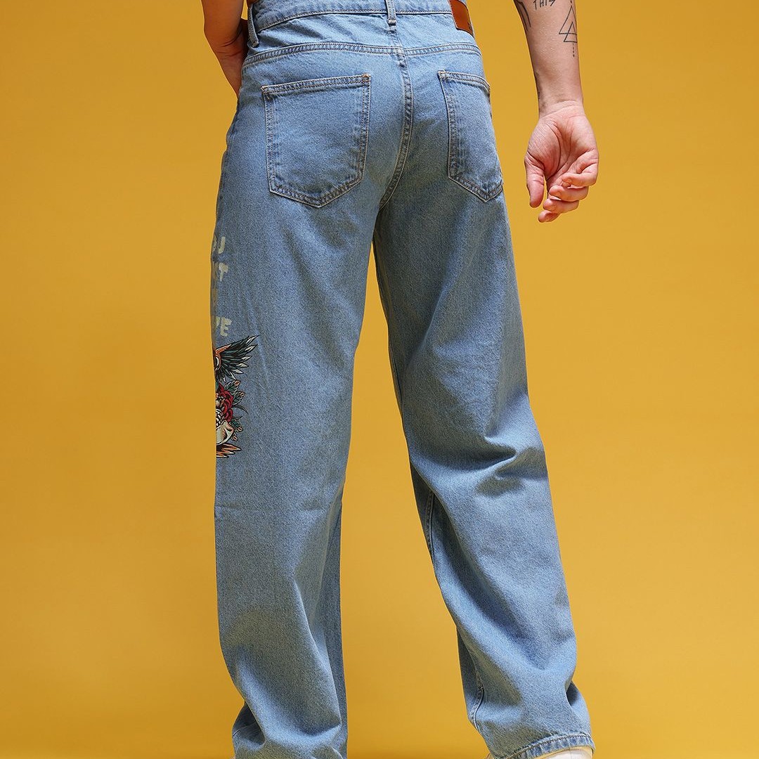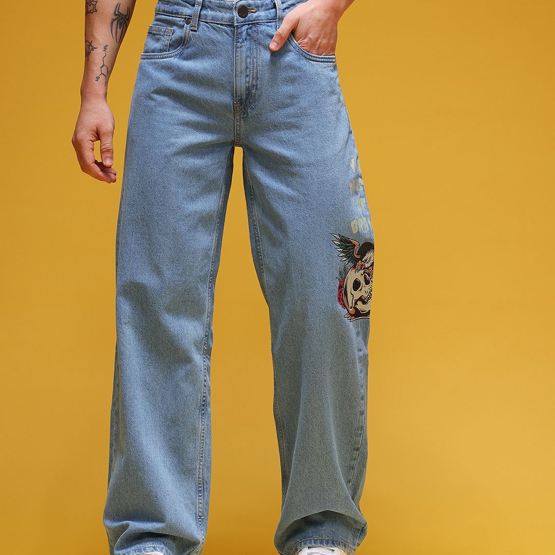 HERE&NOW Men Graphic Print Mid-Rise Pure Cotton Baggy Fit Jeans