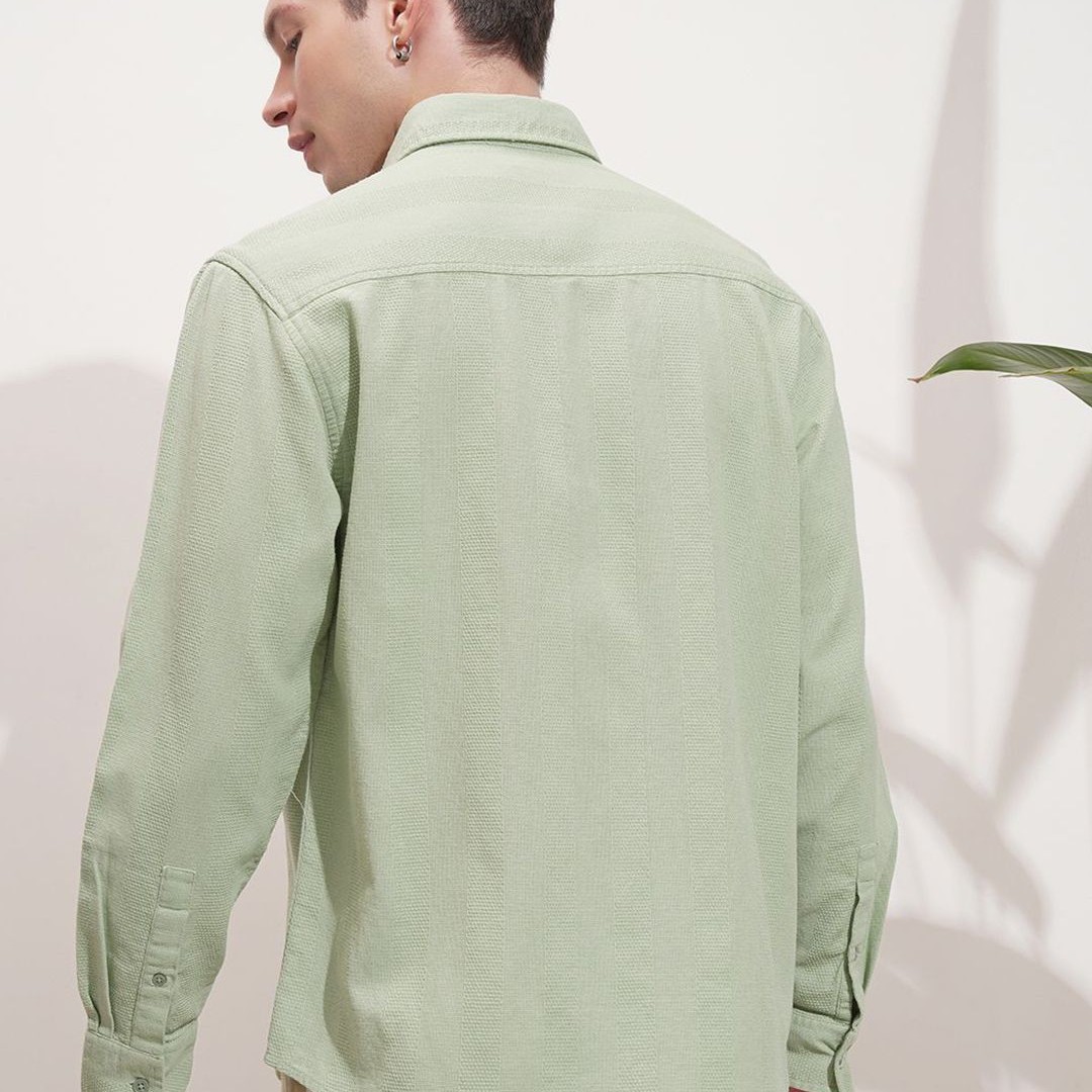 HIGHLANDER Men Textured Spread Collar Cotton Casual Shirt