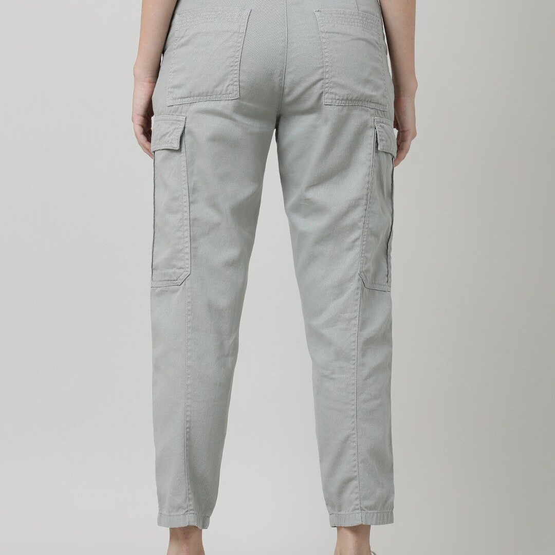 IVOC Women Grey Mid-Rise Cotton Cargos Trousers