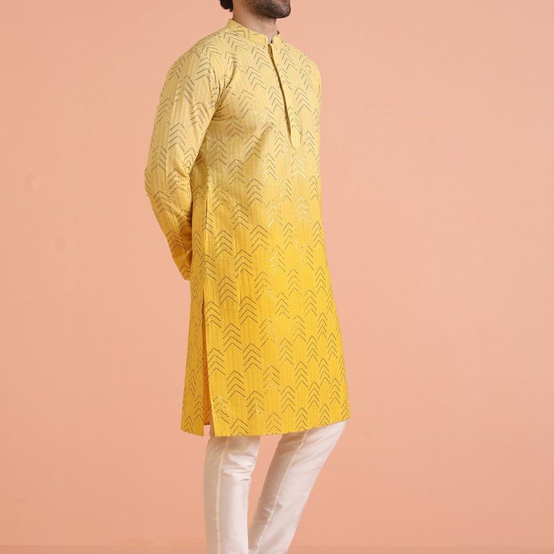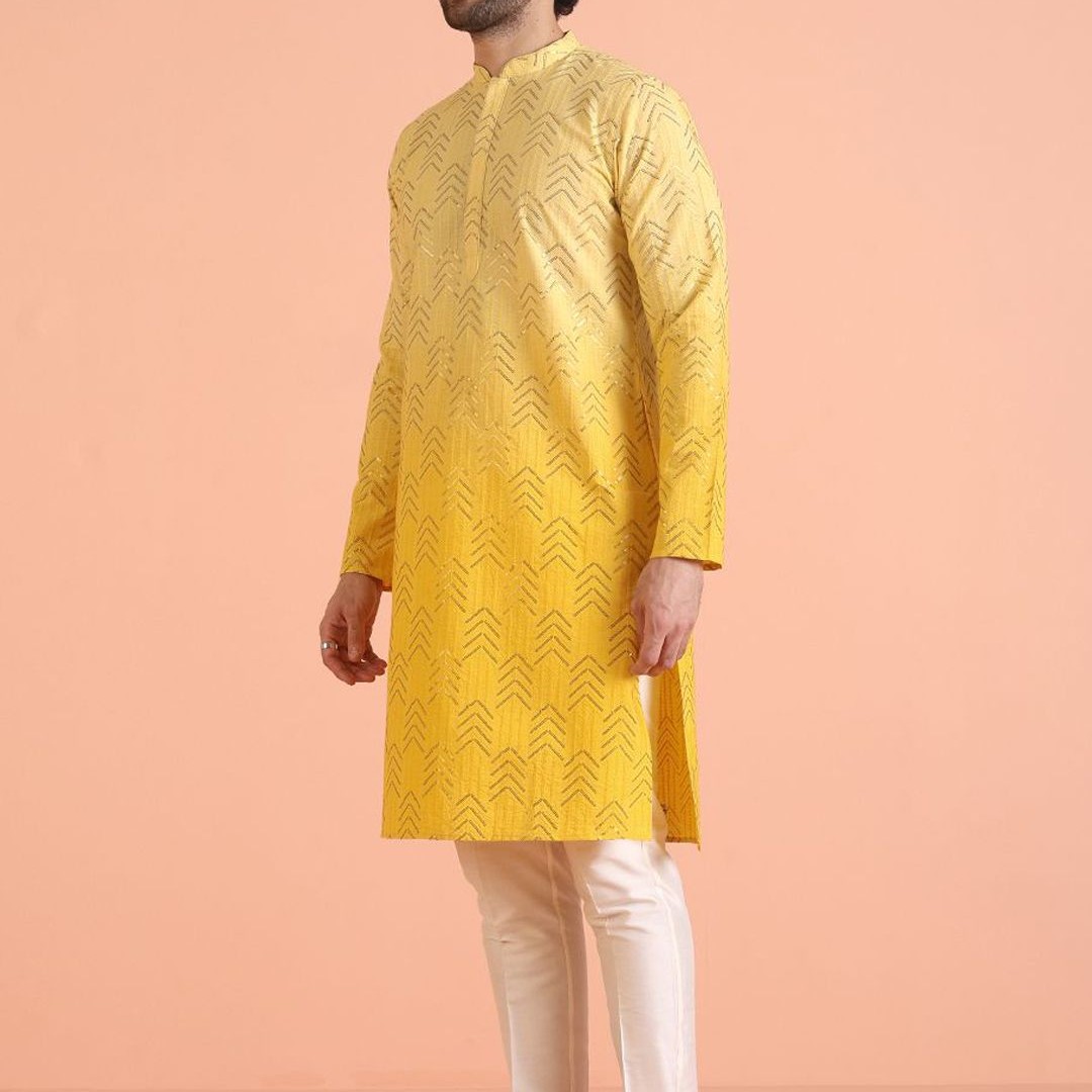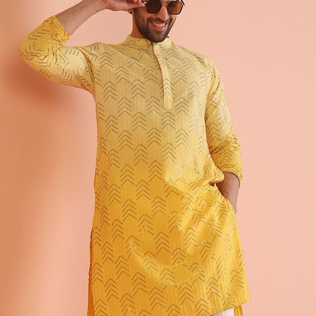 KISAH Men Paisley Embellished Mirror Work Kurta