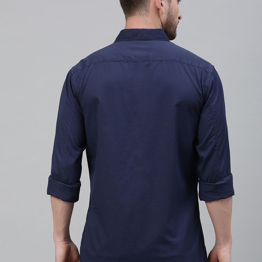 Louis Philippe Jeans Men Navy Blue Regular Fit Solid Casual Shirt