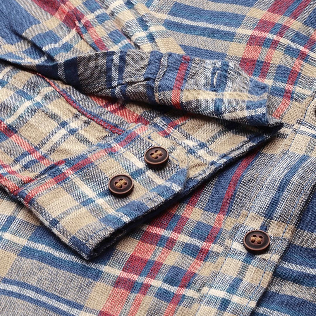 Mast & Harbour Checked Button-Down Collar Cotton Linen Casual Shirt