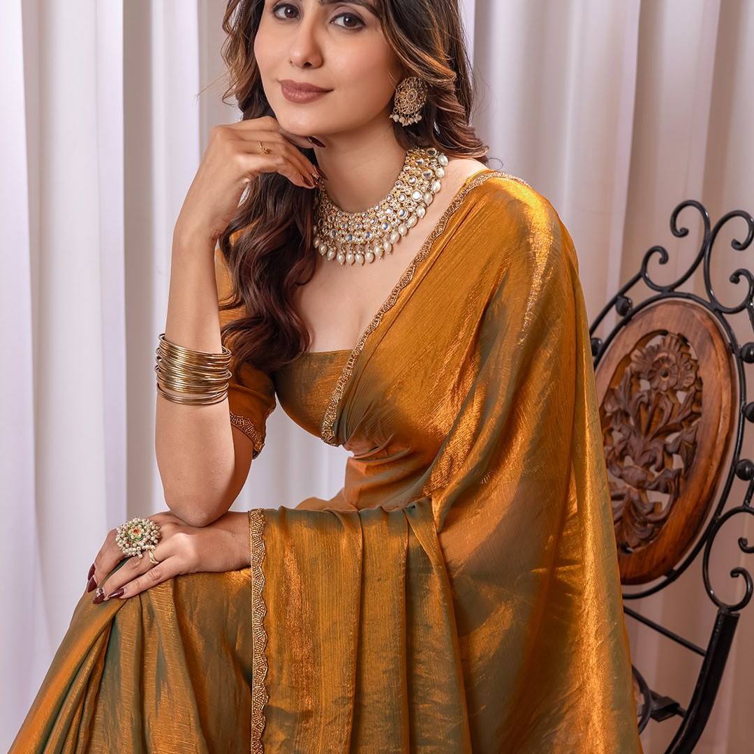 Mitera Beads and Stones Satin Saree