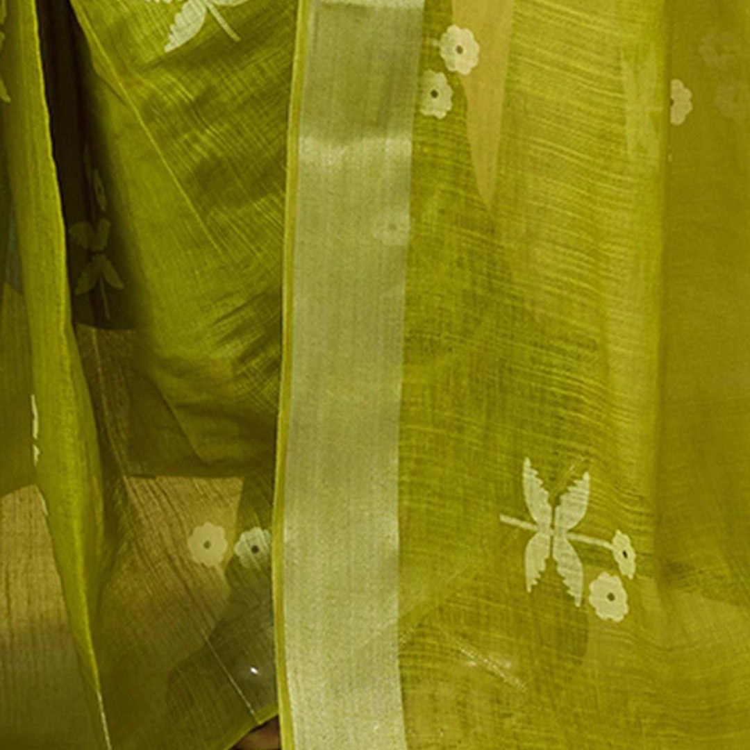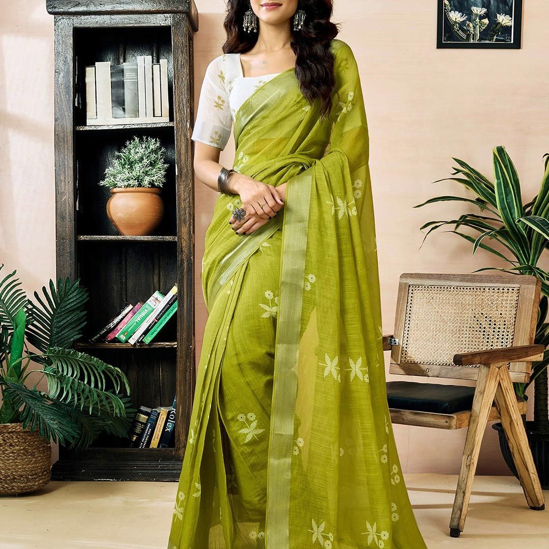 Mitera Ethnic Motifs Pure Linen Ready to Wear Saree