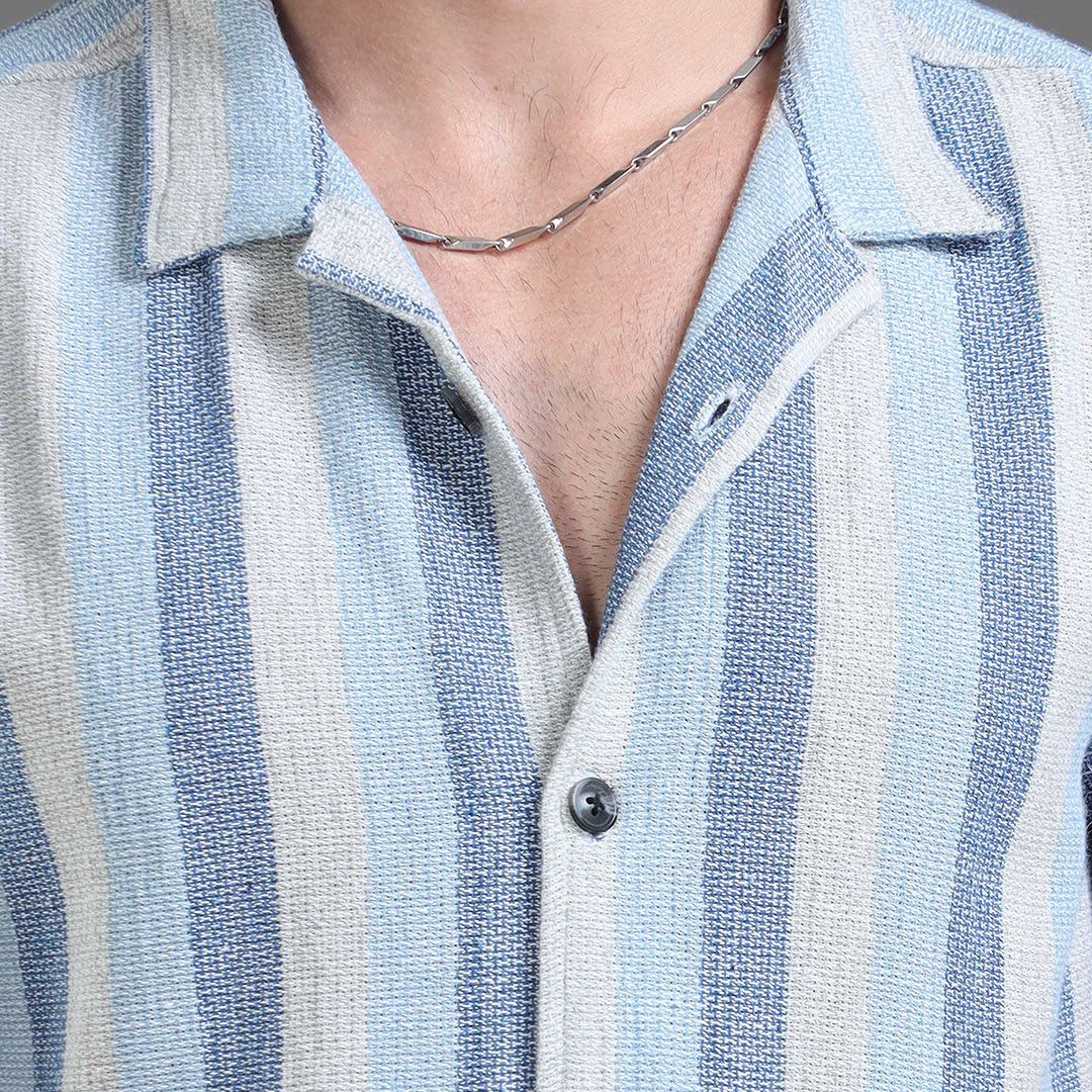 Moda Rapido blue Slim Fit Striped Short Sleeves Cotton Casual Shirt