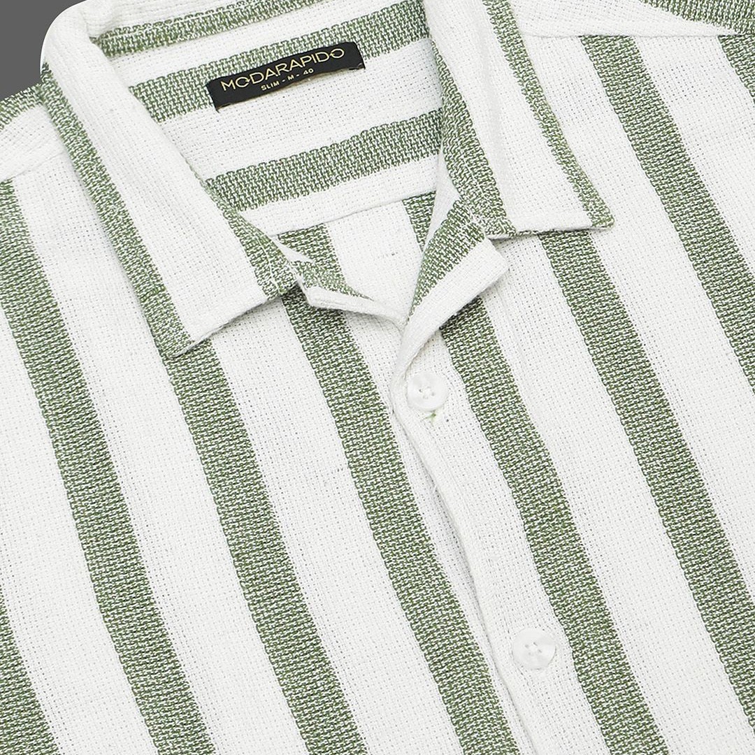 Moda Rapido White Slim Fit Striped Short Sleeves Cotton Casual Shirt