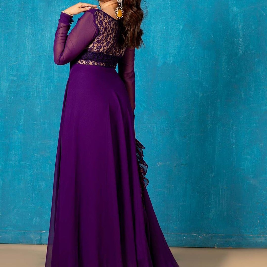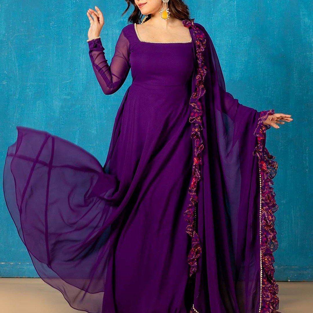 NUD Square Neck Gotta Patti Georgette Anarkali Kurta With Dupatta