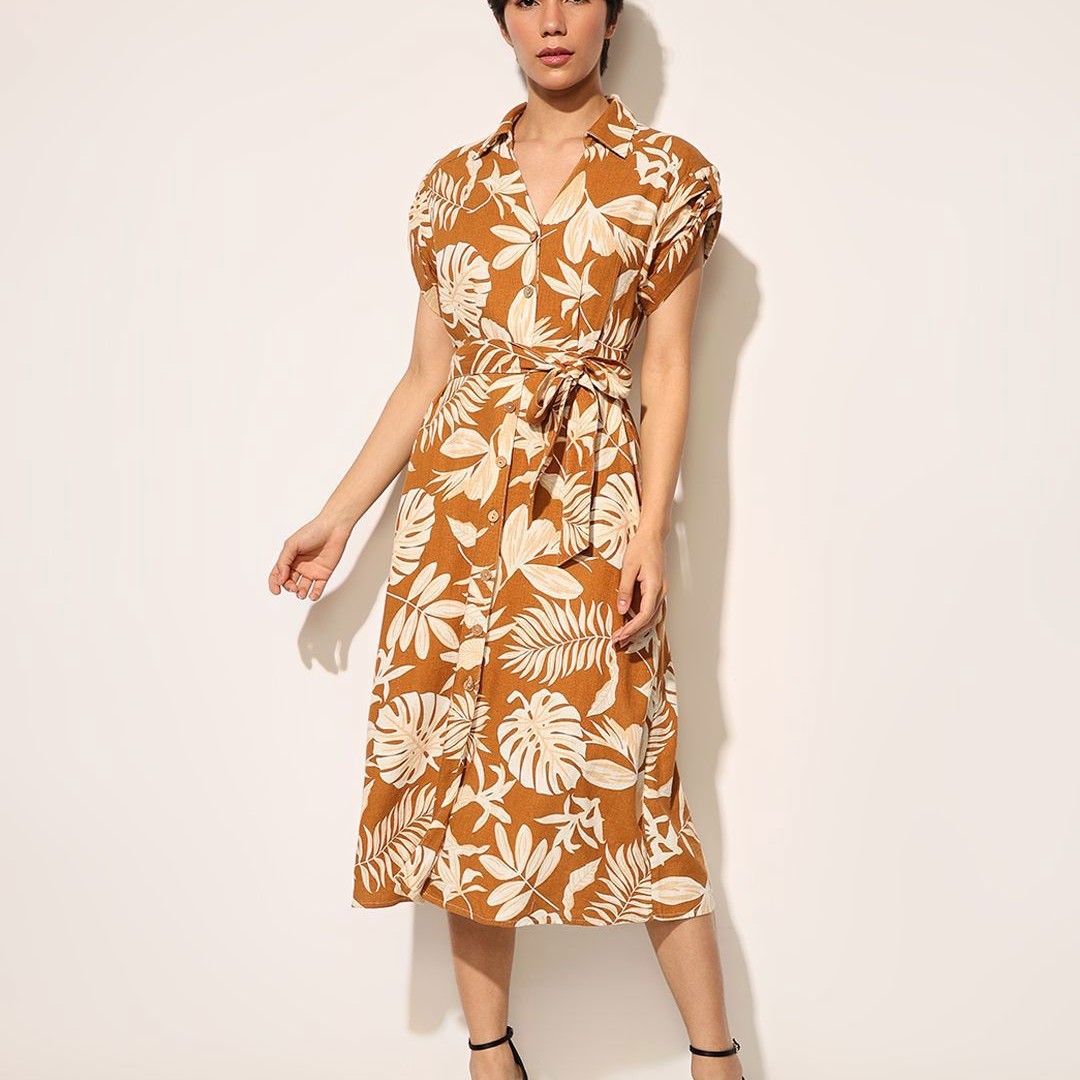 ONLY Women Floral Print Shirt Collar Short Sleeves Shirt Midi Dress