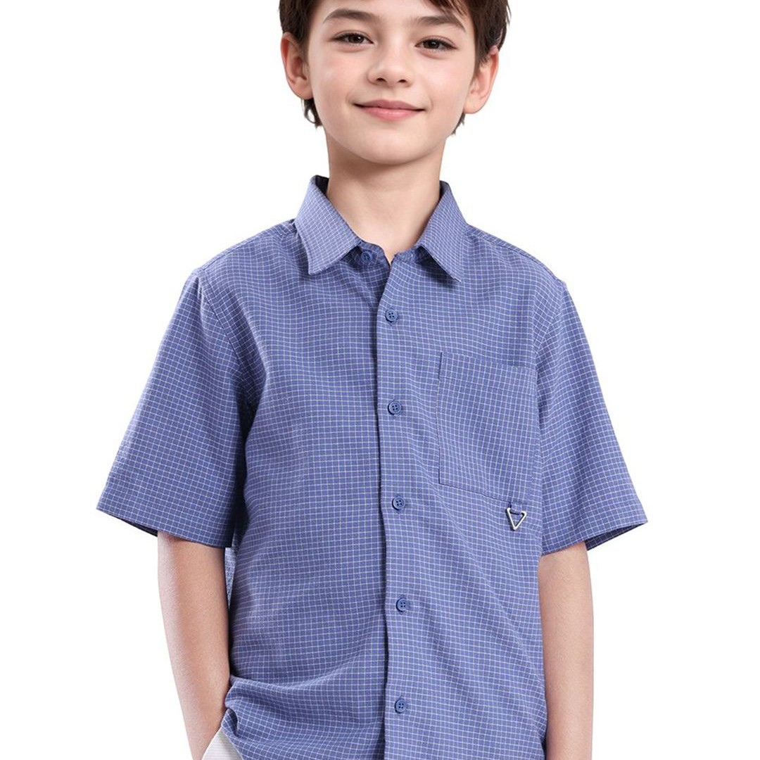 RARE ONES Boys Micro Checks Printed Spread Collar Short Sleeves Casual Cotton Shirt