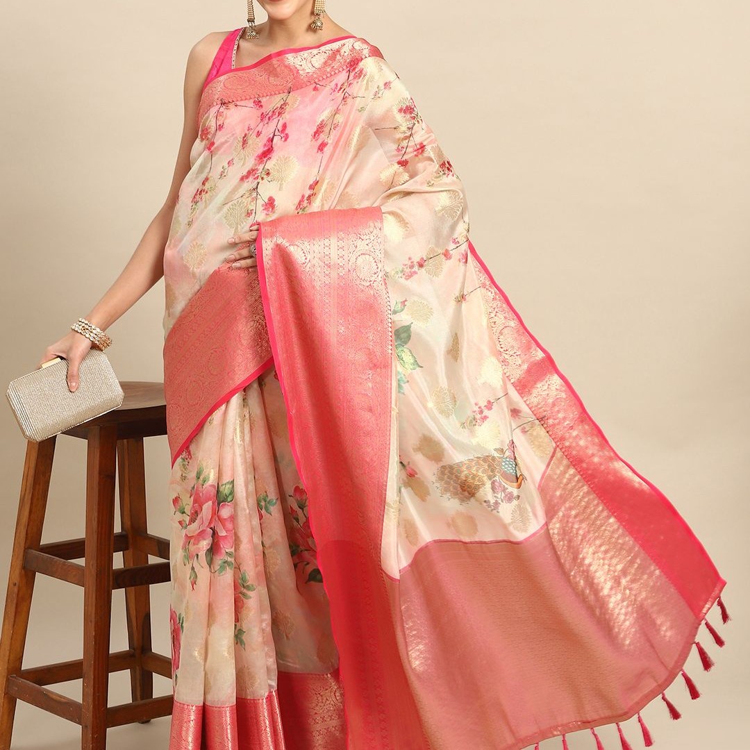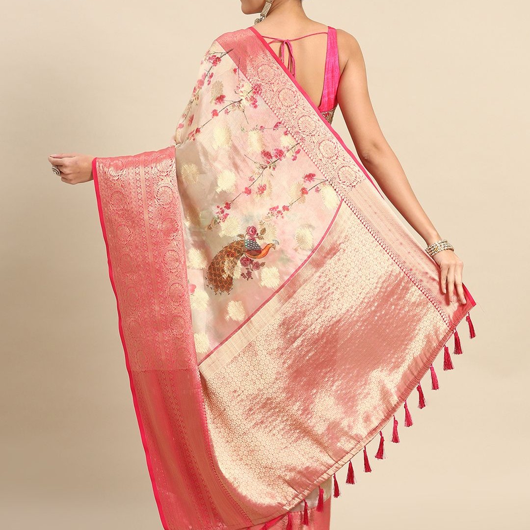 Silk Land Woven Kalamkari Art Silk Chanderi Digital Print Saree