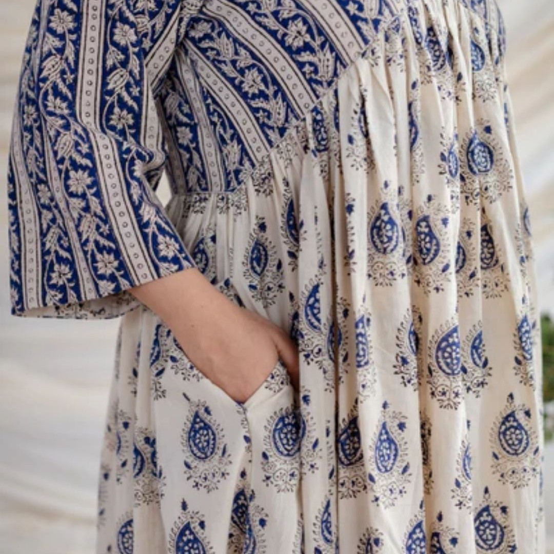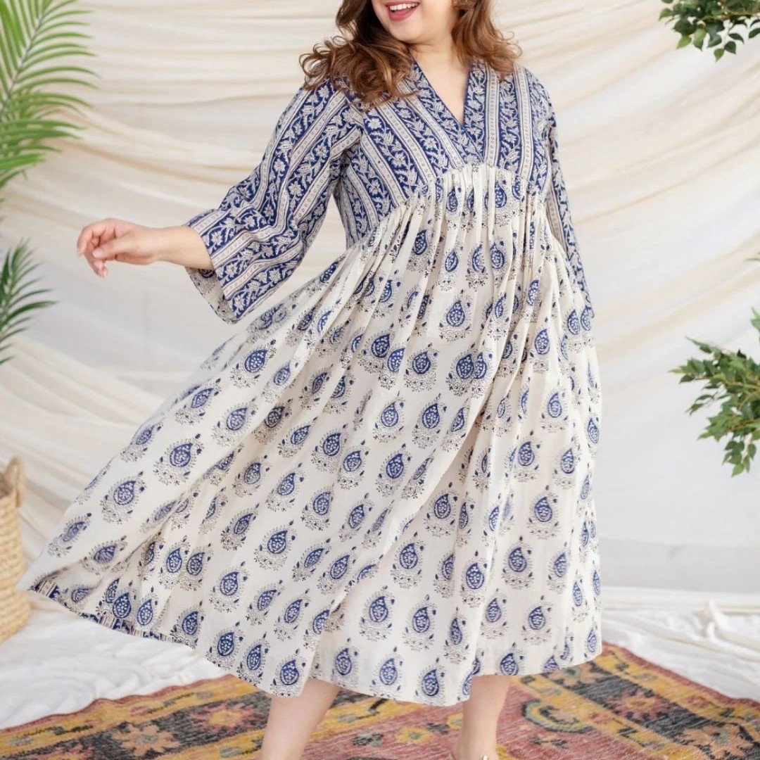 THE INDIAN ETHNIC CO Women Floral Print A-Line Midi Dress