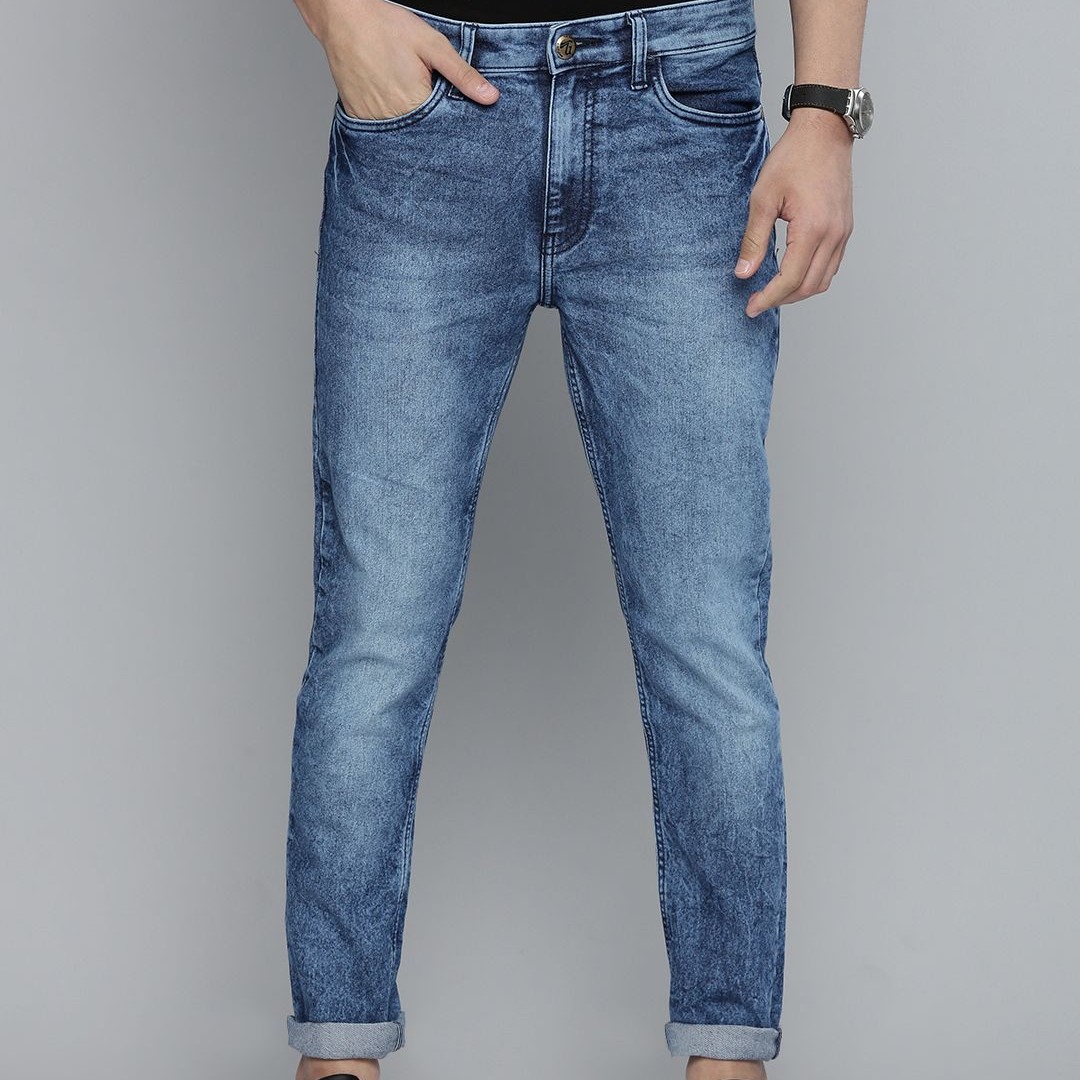 The Indian Garage Co Men Blue Slim Fit Mildly Distressed Light Fade Stretchable Jeans