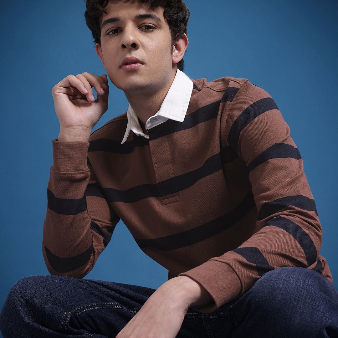 The Roadster Lifestyle Co. Men Striped Polo Collar Pure Cotton T-shirt
