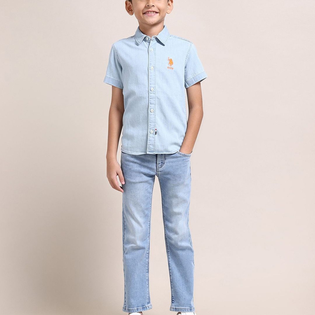 U.S. Polo Assn. Kids Boys Classic Chambray Weave Pure Cotton Casual Shirt