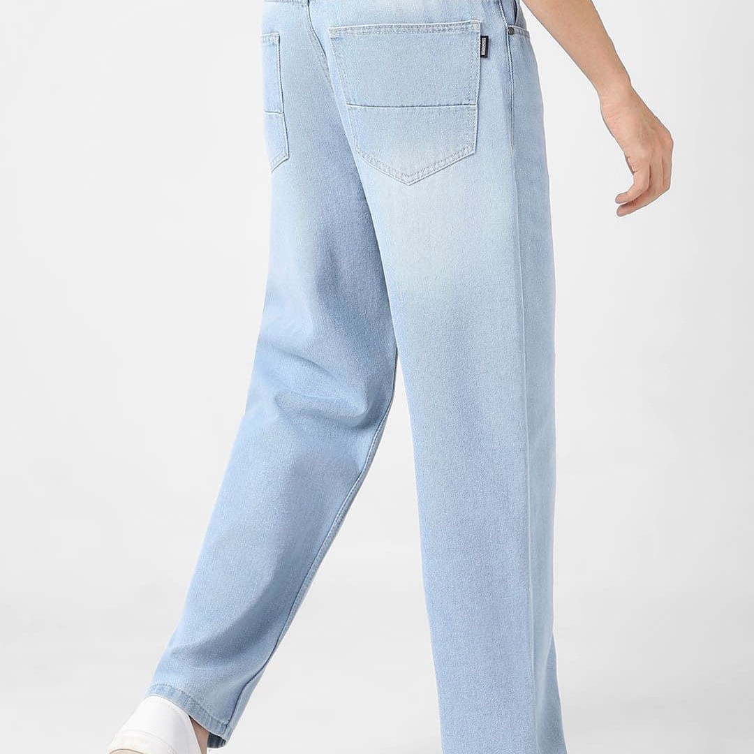 Urbano Fashion Men's Ice Blue Loose Baggy Fit Washed Jeans Non-Stretchable