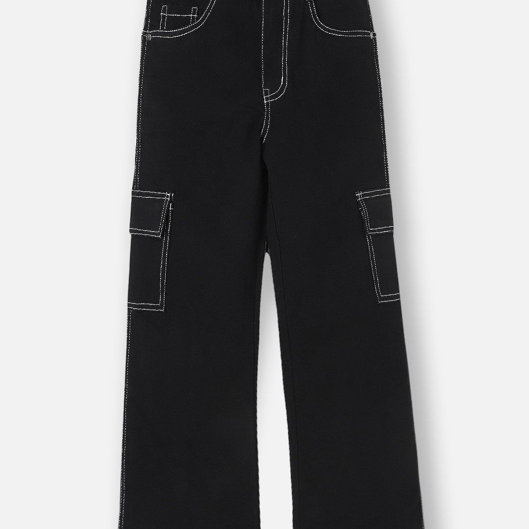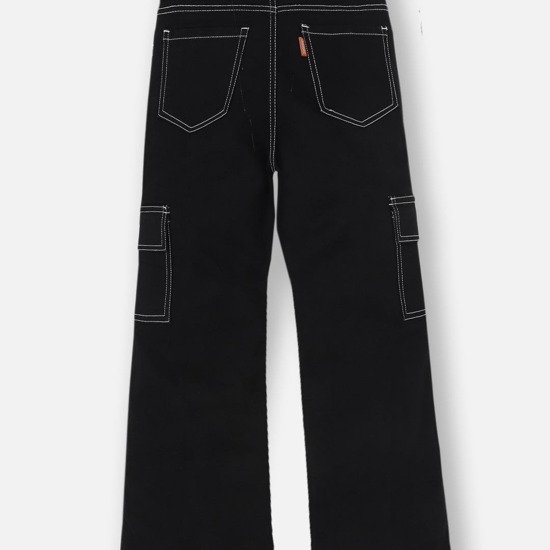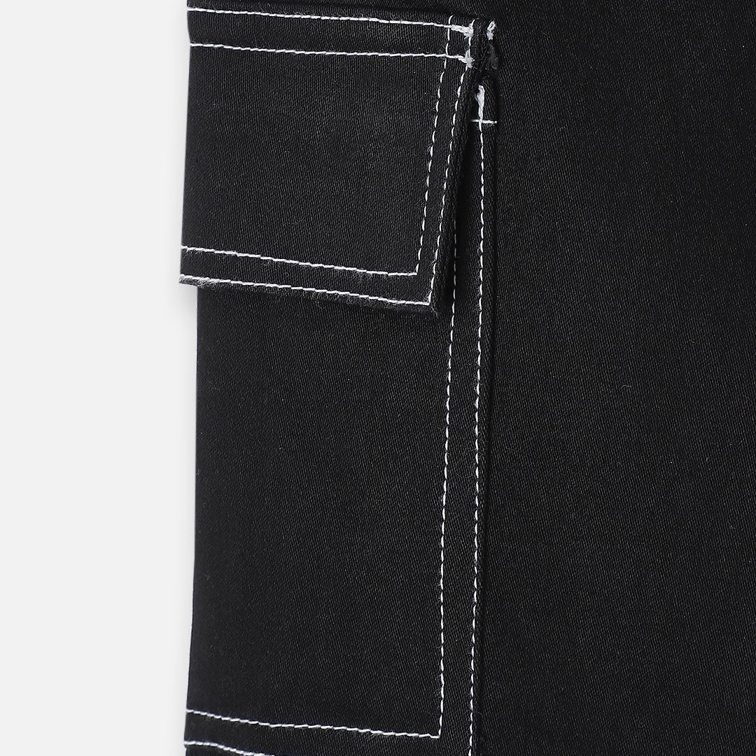 Urbano Juniors Boy's Black Loose Baggy Fit Washed Denim Cargo Jeans with Stretchable