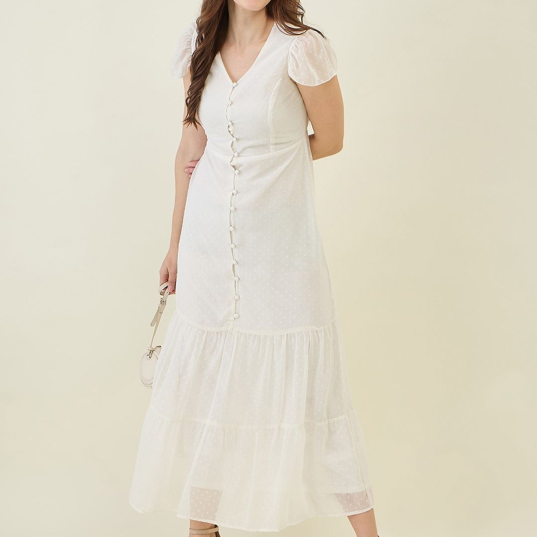 aayu Georgette Self Design A-Line Maxi Tiered Dress