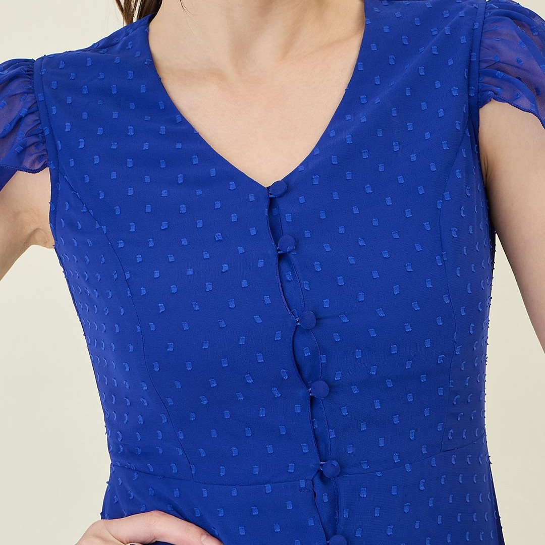 aayu Women V-Neck Tiered Self Design Flutter Sleeves A-Line Maxi Dress