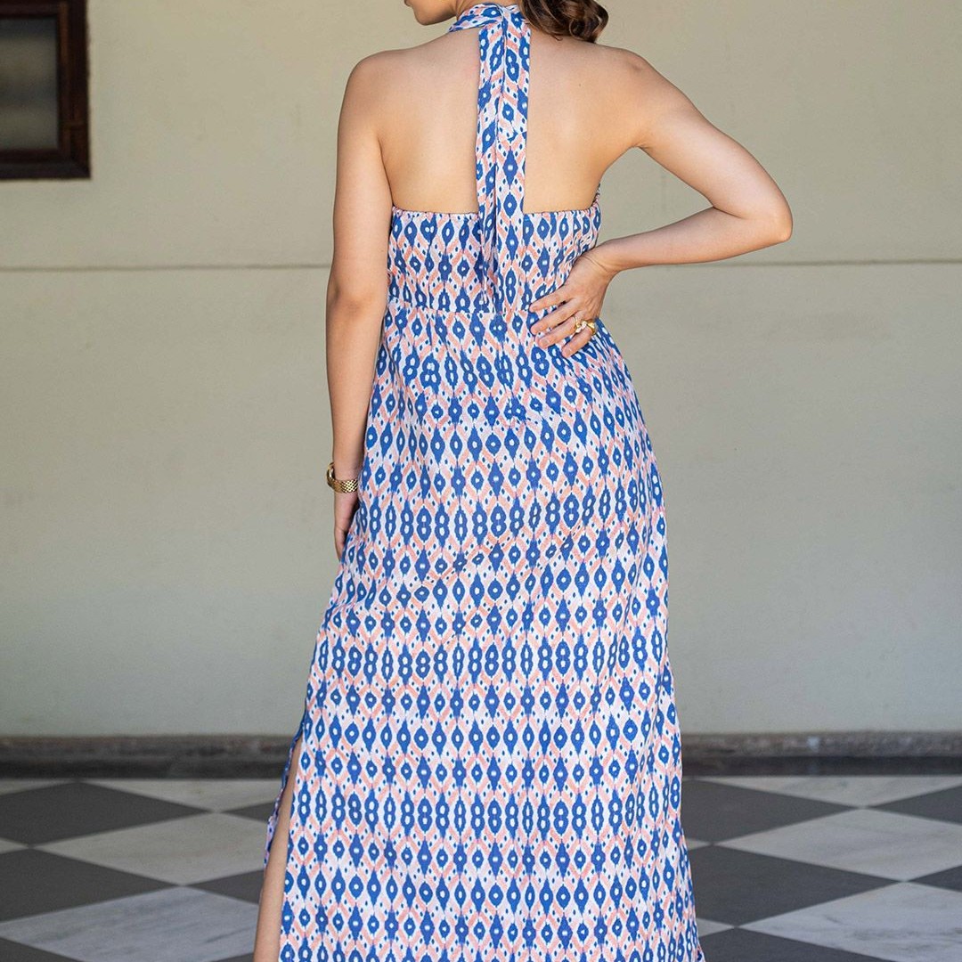 Anasi Clothing Women Ethnic Motifs Printed Halter Neck Linen Shift Maxi Dress