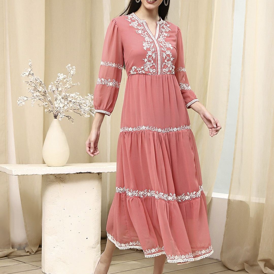 Biba Women Ethnic Motifs Embroidered Fit & Flare Dress