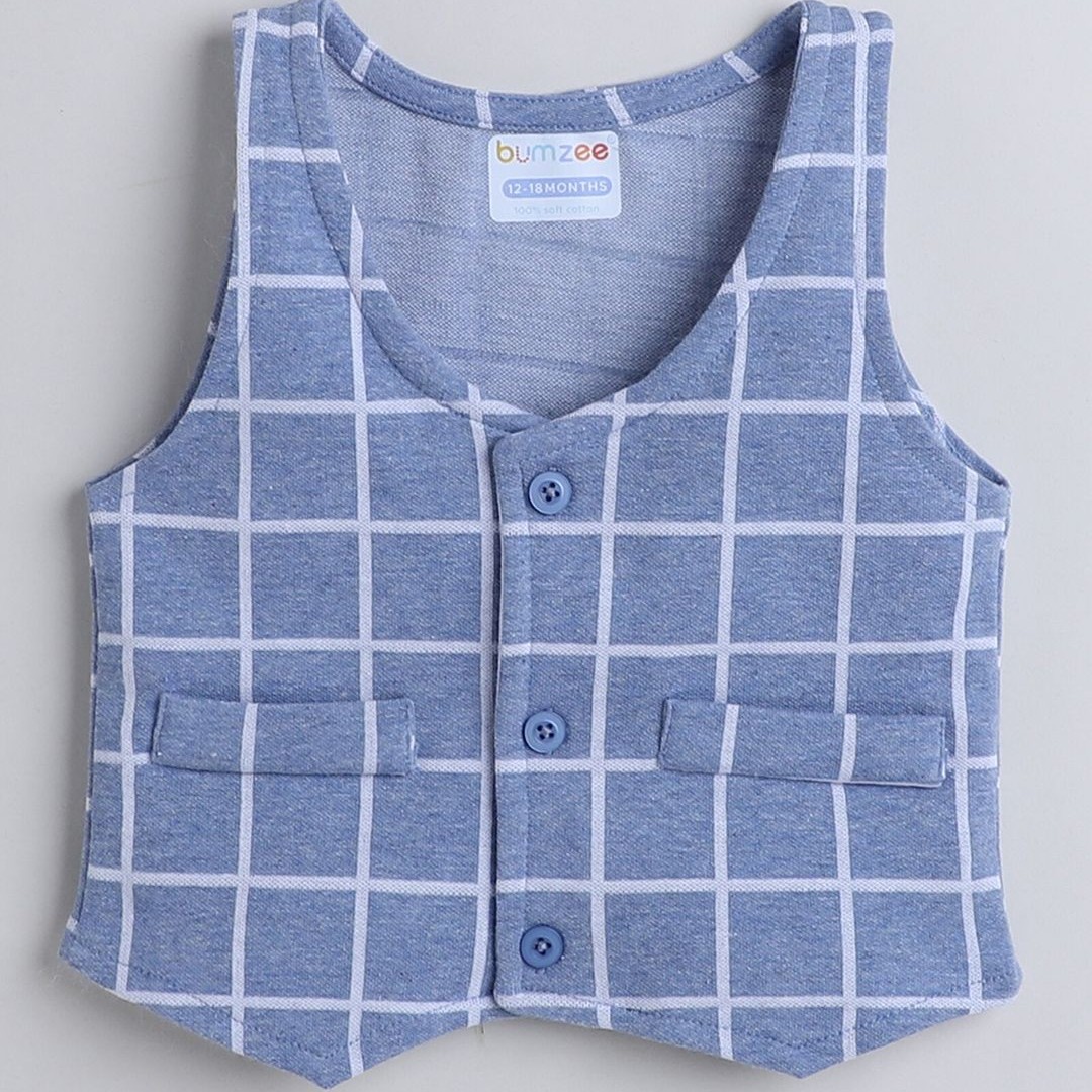 BUMZEE Infant Boys Pure Cotton Shirt With Shorts & Waistcoat