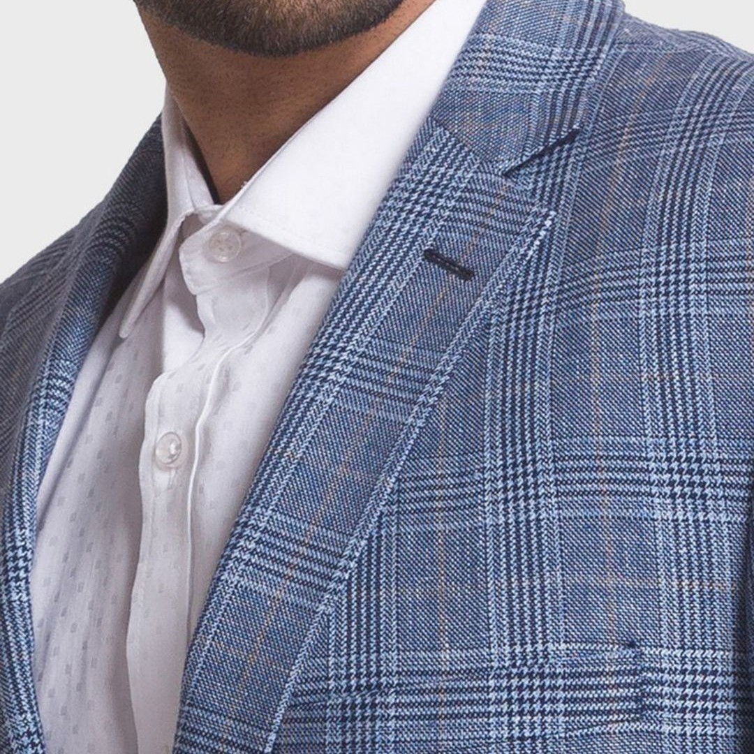 ColorPlus Men Blue Checked Single-Breasted Formal Linen Blazer