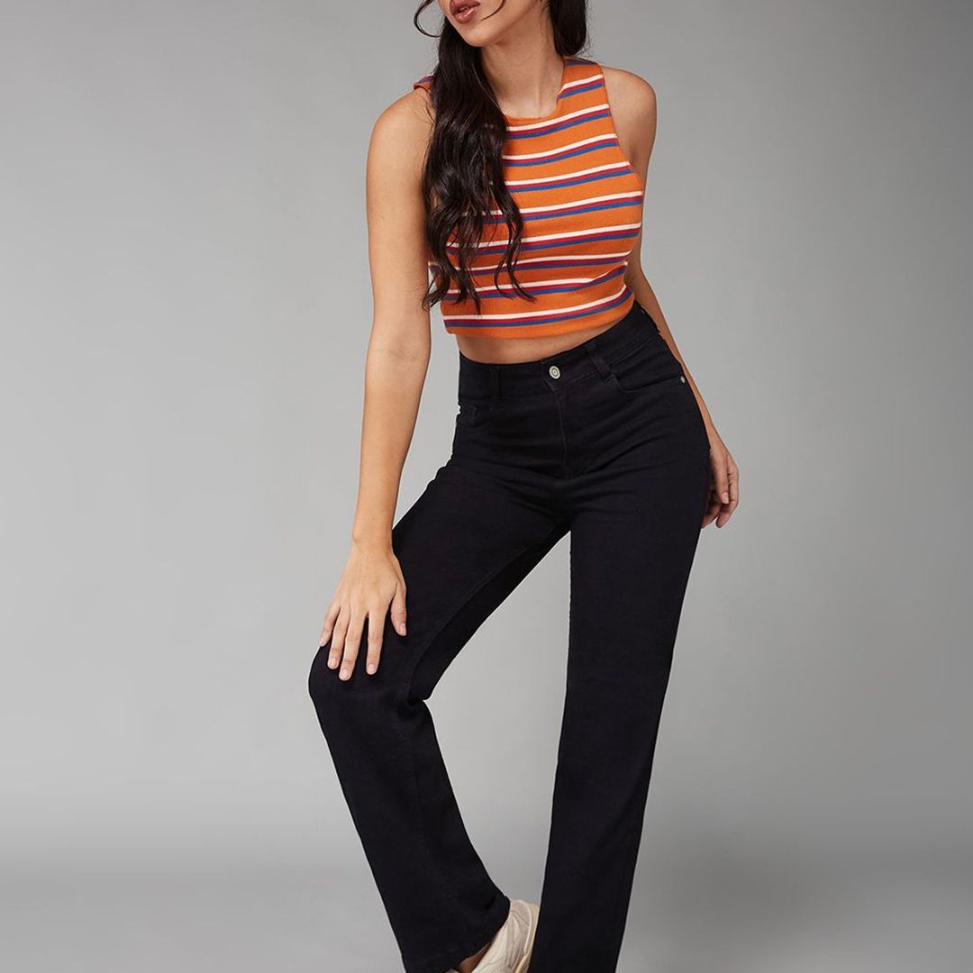 DOLCE CRUDO Women Straight Fit High-Rise Stretchable Jeans