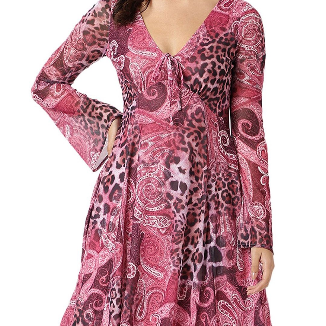 GUESS V Neck Ethnic Motifs Print Bell Sleeve Fit & Flare Dress