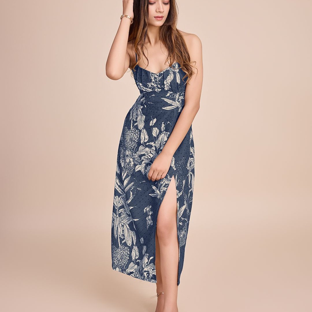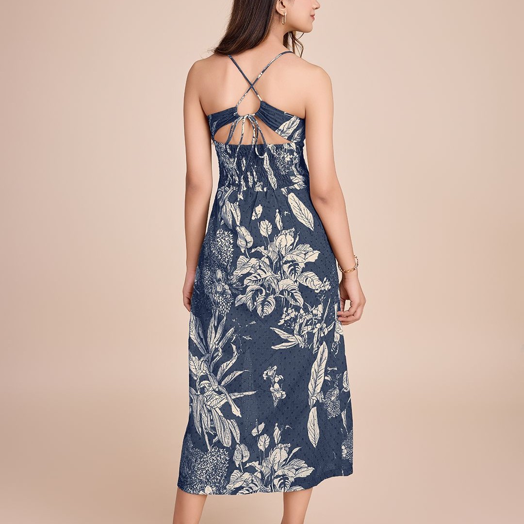 HOUSE OF MIRA Women Floral Printed Cotton Empire Midi Dress