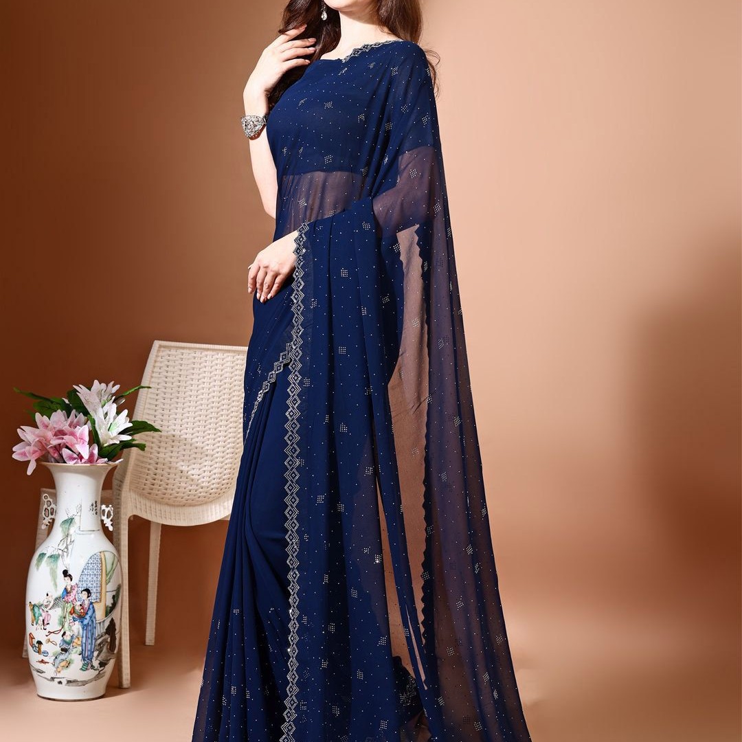 Leelavati Embellished Beads and Stones Pure Chiffon Saree