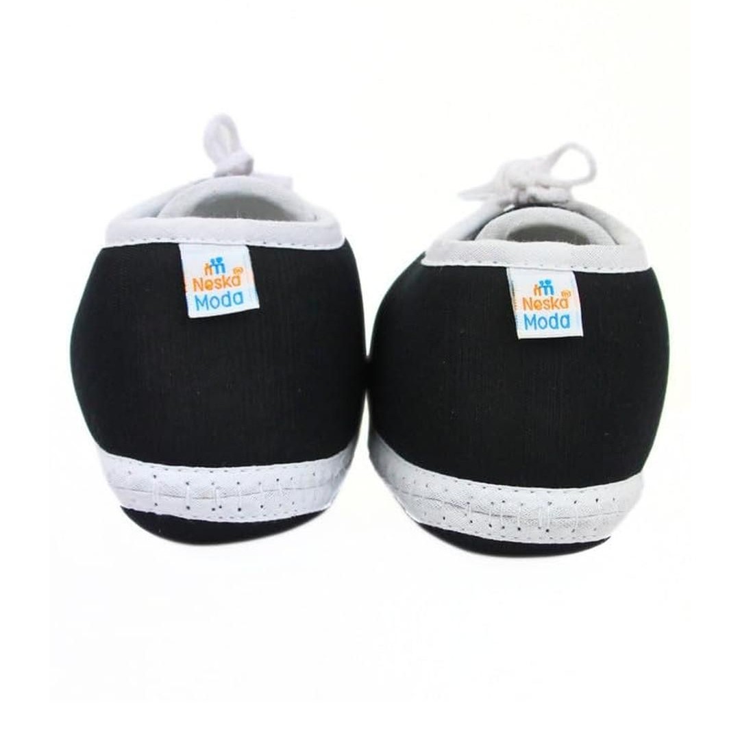 Neska Moda 3 To 12 Months Baby Boys & Baby Girls Cute Soft Cotton Pre-Walker Lace Plain Booties (Toe to Heel Length - 12 cm, Black:White)