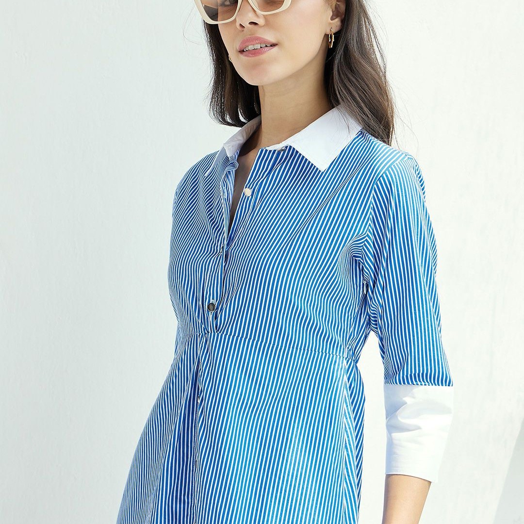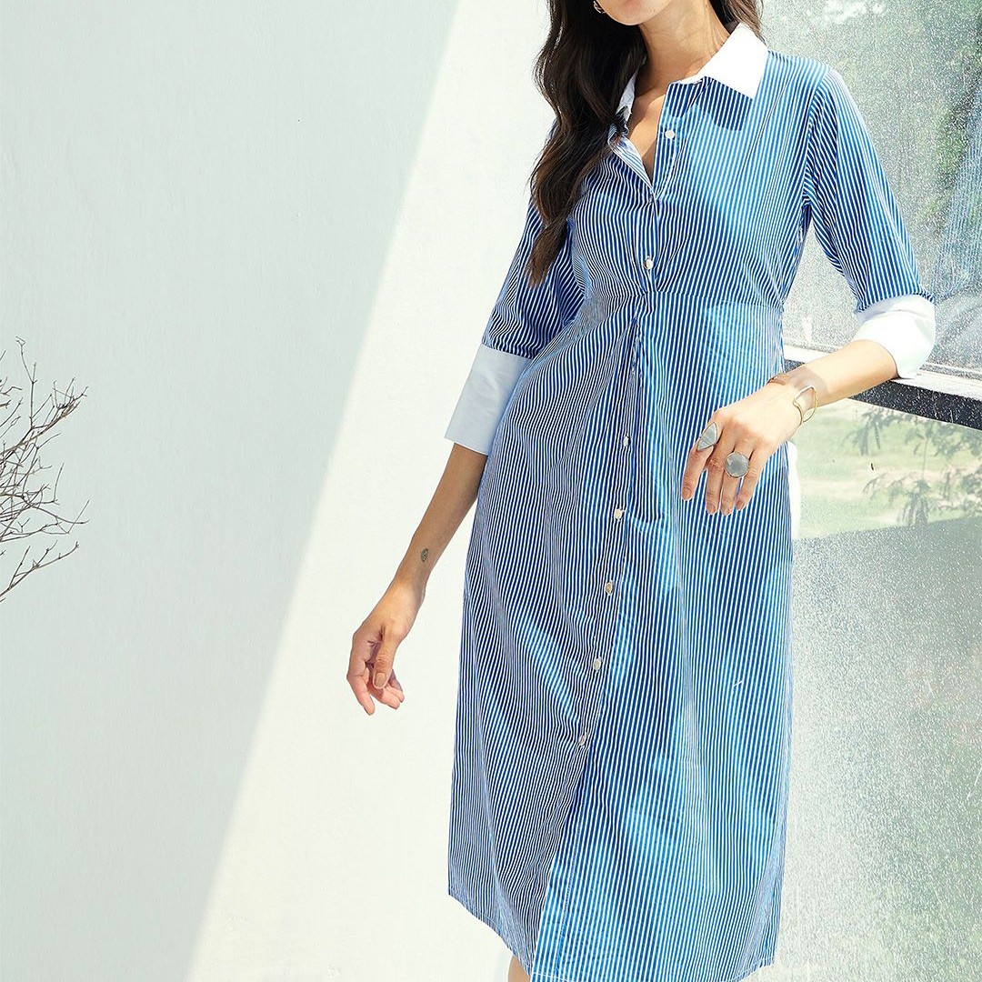 Pink Paprika by SASSAFRAS Striped A-Line Midi Cotton Dress