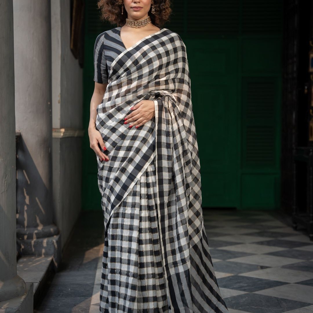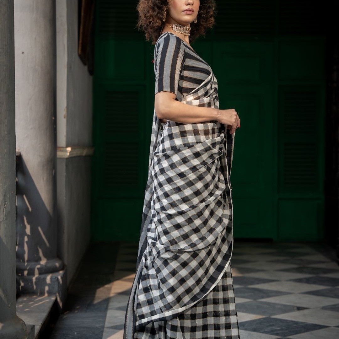Suta Checked Suta Multi Color Pure Cotton Zari Saree.