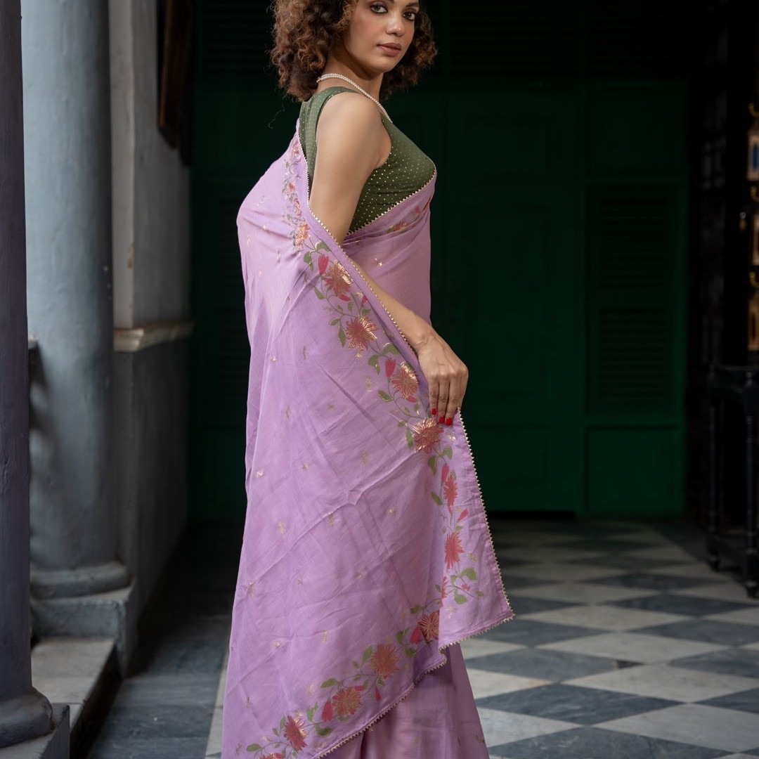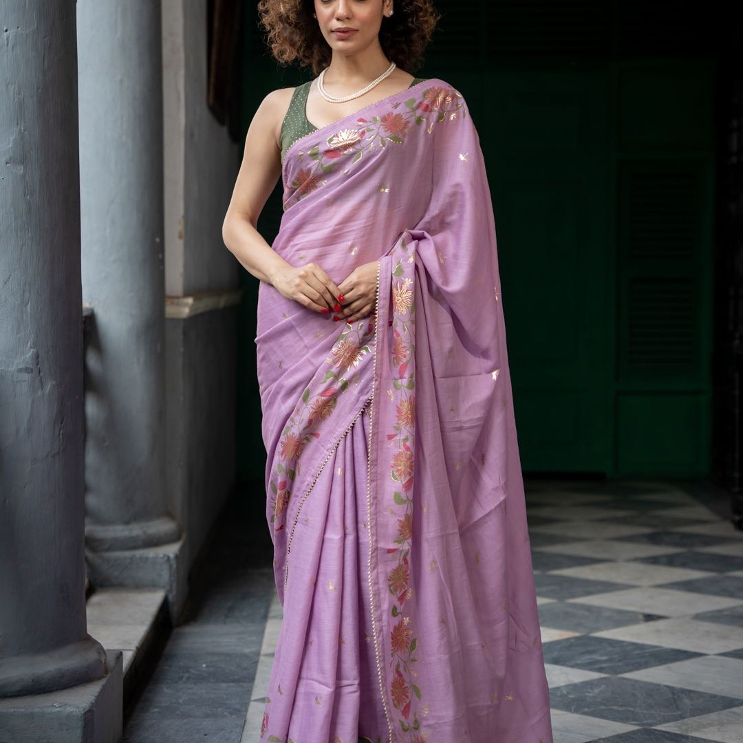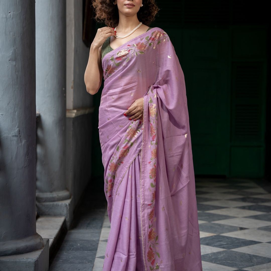 Suta Floral Printed Lavender Color Cotton Blend Saree