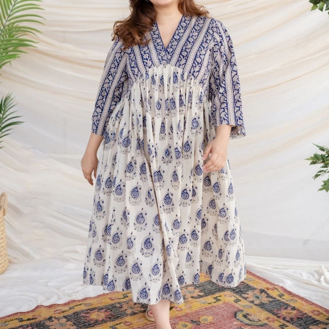THE INDIAN ETHNIC CO Women Floral Print A-Line Midi Dress