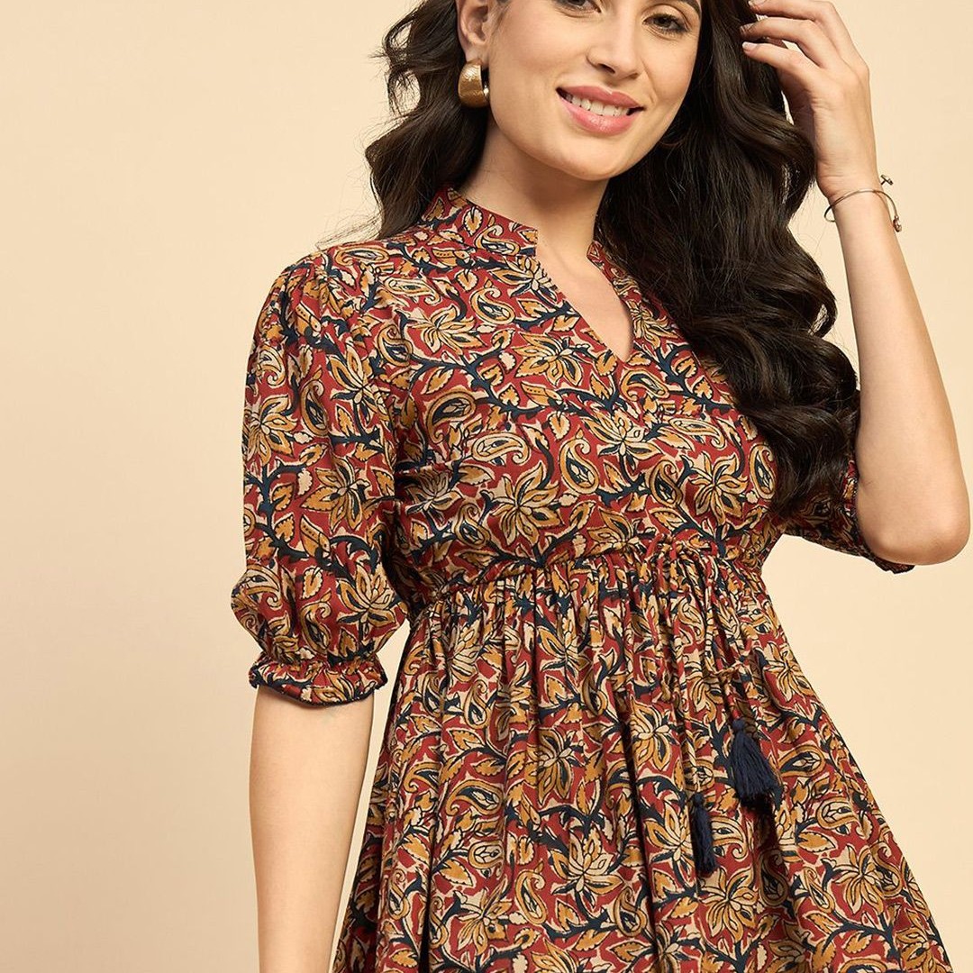 Azira Women Ethnic Printed Mandarin Collar Cotton Top