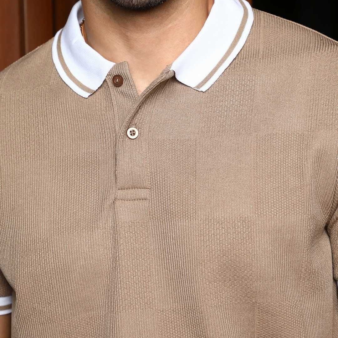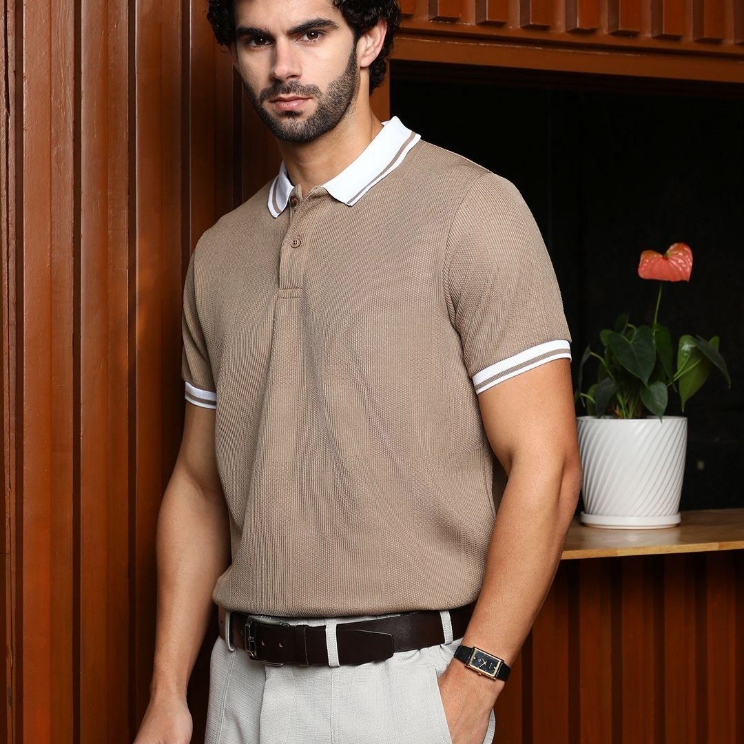 Campus Sutra Men Self Design Polo Collar Cotton T-shirt