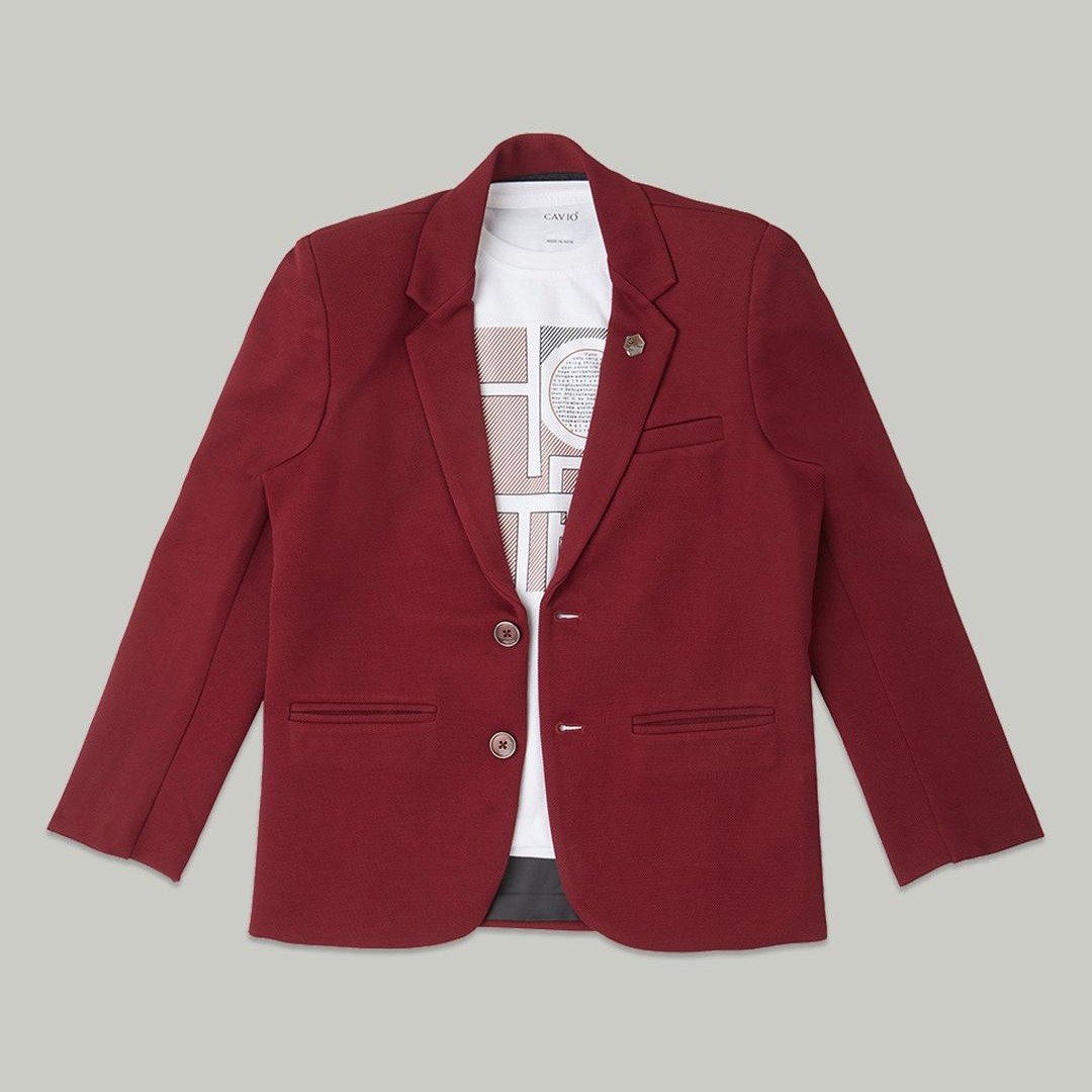 CAVIO Boys Comfort Fit Notched Lapel Collar Pure Cotton Single-Breasted Blazer & T-Shirt