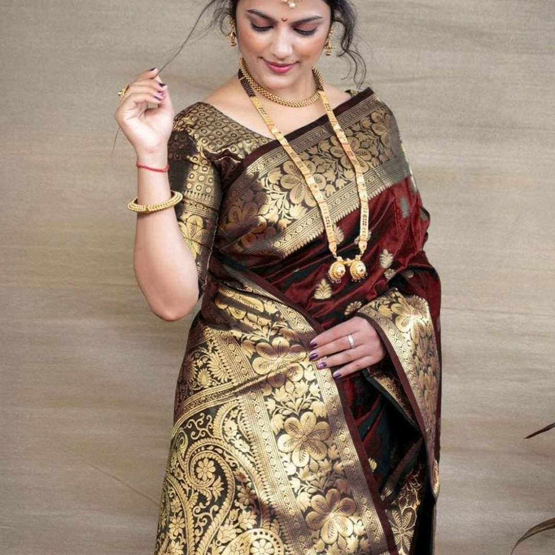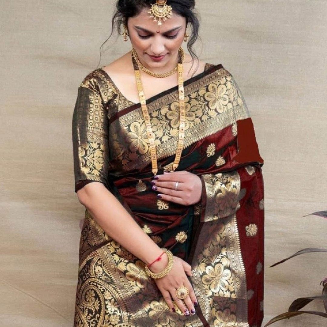Dhyey Fashion Ethnic Motifs Woven Design Zari Pure Silk Banarasi Saree